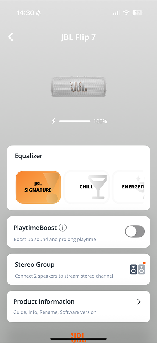 Flip 7 on varustettu AI Sound Boost -toiminnolla, jonka luvataan paikkaavan pienen koon mukanaan tuomia puutteita. Kaiuttimen päissä on passiivielementit, jotka auttavat toistamaan bassoa jonkinlaisella syvyydellä. Flip 7:ssä – kuten JBL:n kaikissa uusimmissa kannettavissa kaiuttimissa – on Auracast, mikä mahdollistaa usean kaiuttimen yhdistämisen samaan lähteeseen, jolloin äänikuva kasvaa huomattavasti.