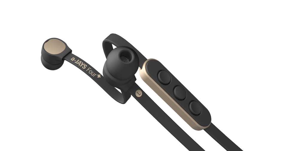 Jays on pärjännyt testeissämme hyvin, ja viisi vuotta sitten nimesimme A-Jays Four -mallin suosikiksemme. Nyt mallista on tullut päivitetty plus-versio, jonka katu-uskottava muotoilu on ulotettu aina litteään, sotkeutumattomaan johtoon saakka. Laatu vaikuttaa lupaavalta, joskin kaukosäädin on muovisen oloinen. Jäimme kaipaamaan johdon liittimeen parempaa vedonkestoa ja pohdiskelemaan, miksi laitteessa ei ole minijakkiliitäntää Apple-laitteille. Värivaihtoehdot ovat musta ja valkoinen joko hopean- tai kullanvärisillä yksityiskohdilla.