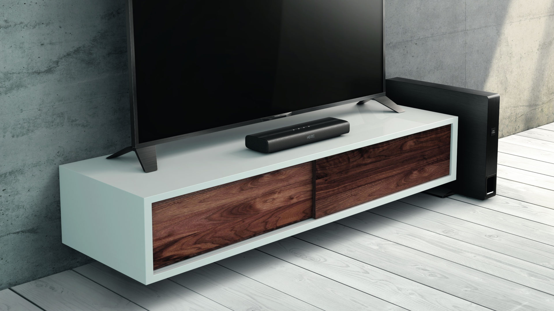 Vain 40 cm:n pituudellaan Fidelio B1 ei hallitse olohuoneen sisustusta, olipa sen yllä minkä kokoinen televisio tahansa. Subwoofer on niin litteä, ett sen voi työntää vaikka sohvan alle, mutta silti niin leveä ja syvä, että se pystyy toistamaan järeät bassot. Jos basso tulee suoraan alapuoleltasi, muuttuu katselukokemus astetta fyysisemmäksi, kun subwoofer tytisyttää sohvaa.