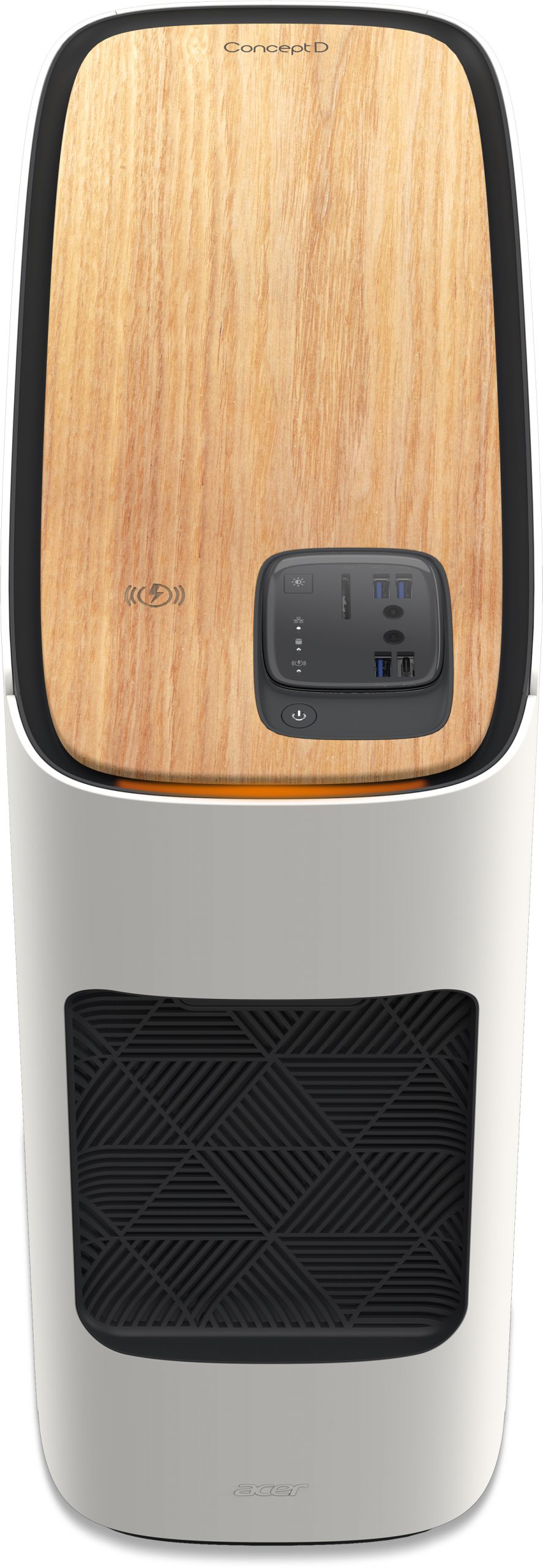Ennen muinoin (jonnet ei muista kuitenkaan, mutta me gubbet muistamme) kaikki tietokoneet olivat isoja pöytäkonekaappeja. Niiden etuna on se, että rautaa on helppo vaihtaa ja päivittää. Ammattitason näytönohjaimen (joka on helppo vaihtaa aina uudempaan parissa minuutissa) lisäksi ConceptD 500:ssa on kolme laajennuspaikkaa emolevyssä. Isoon koneeseen mahtuu monenmoista, ja esimerkiksi USB-portteja on kahdeksan, joista neljä on sijoitettu kätevästi koneen päälle. Sieltä löytyvät myös kortinlukija, ääniulostulo ja langaton Qi-latauspaikka puhelimelle. Koska fyysinen media meni ja kuoli, ei etuosassa ole levyasemia tai muitakaan aukkoja entisaikojen tapaan. Mutta painalluksella esiin ponnahtava kuuloketeline kyllä löytyy!
