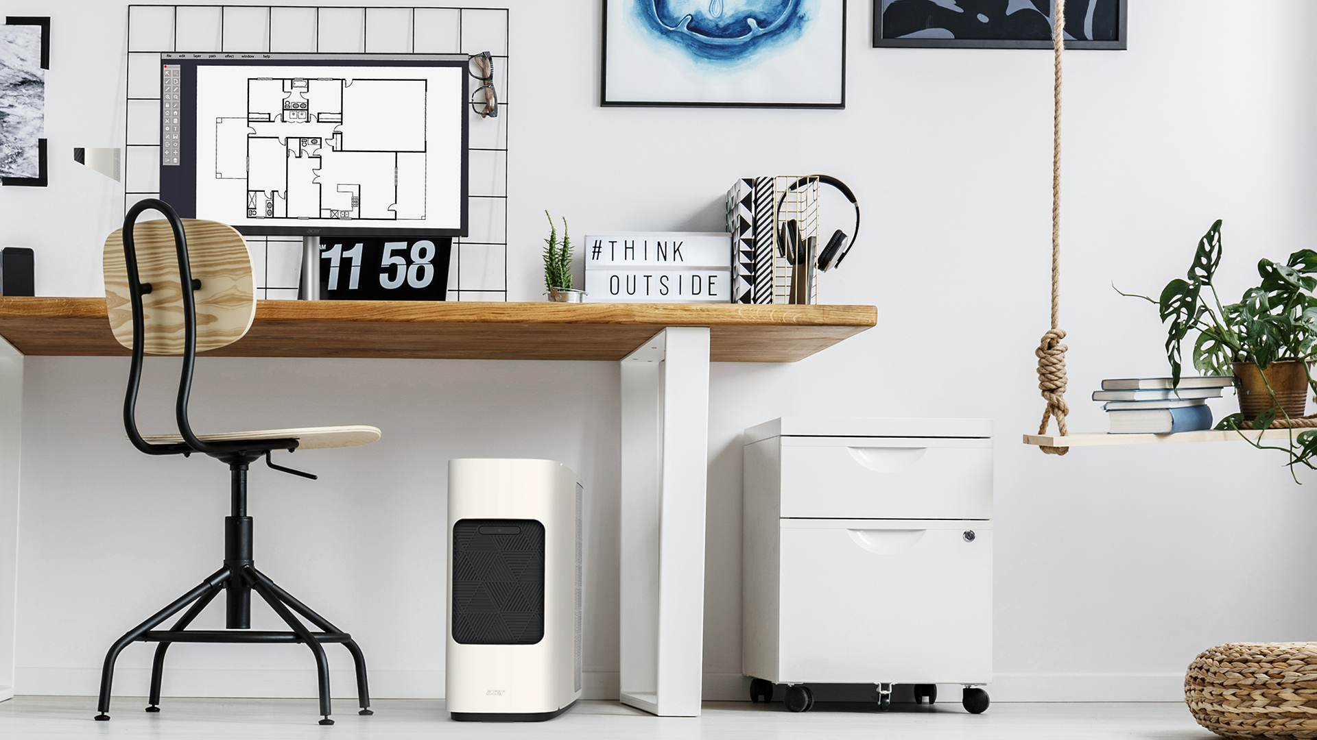 Acerin mukaan ConceptD on lähes äänetön (40 dBA). Tulos on toki oikea, mutta vain metrin päästä mitattuna. Pöydällä ollessaan koneen tuulettimen kuulee heti, kun suoritin joutuu suorittamaan. Eikä ääni ole mikään kannettavan pikkutuulettimen surina, vaan kolmen suuren tuulettimen synnyttämää matalaa hurinaa. Pöytäkoneet kuuluvatkin nimensä vastaisesti lattialle.