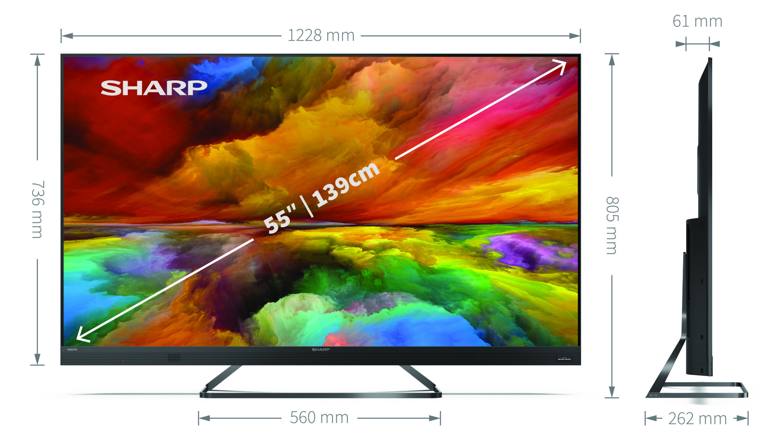 Kuvapuolella Sharp luottaa tuttuun ja hyväksi havaittuun reseptiin eli QLED-tekniikalla varustettuun LCD-paneeliin, jonka kvanttipisteet (Quantum Dots) auttavat laajentamaan värispektriä.