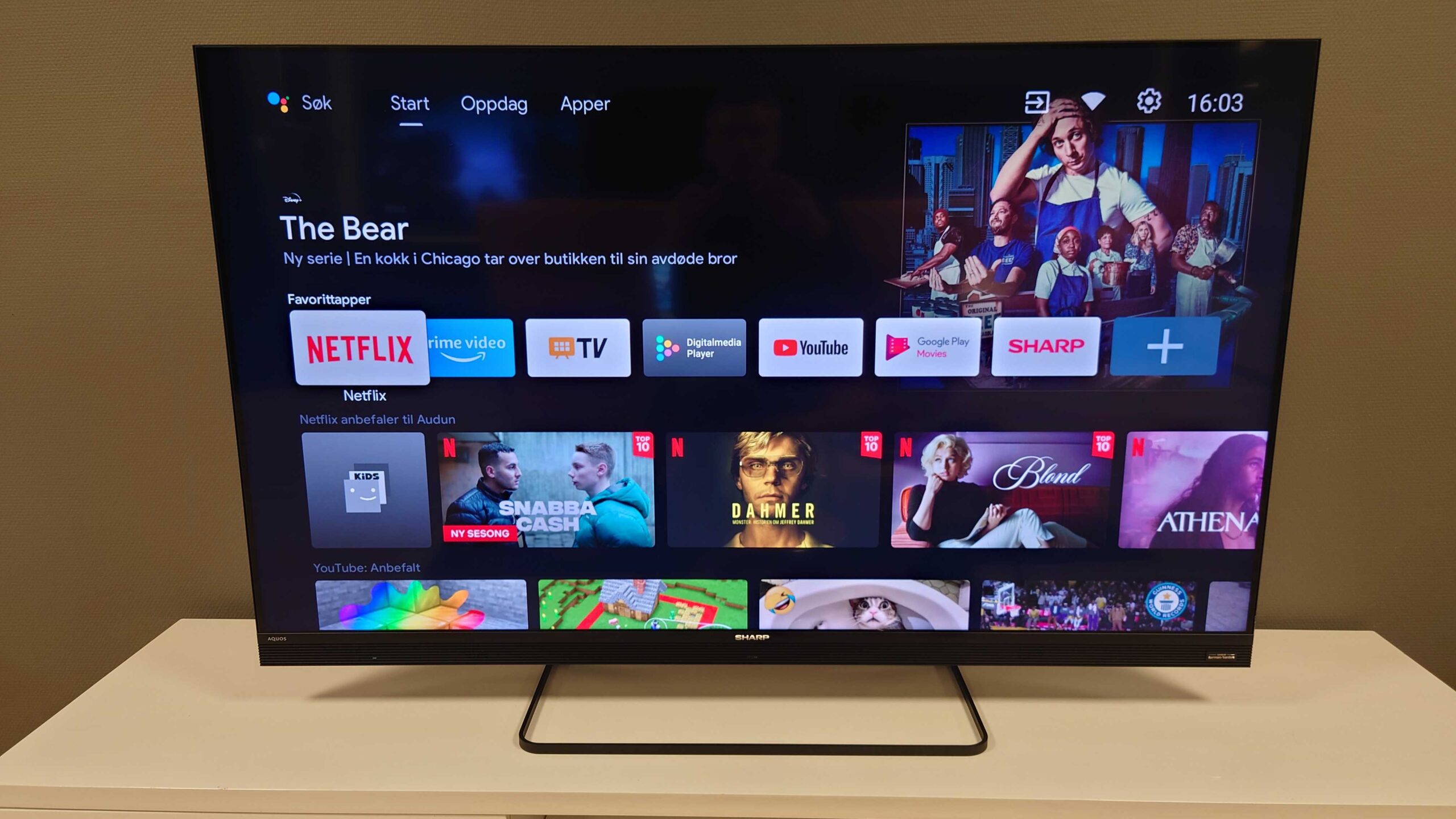 Tv on myös käyttäjäystävällinen: Sharp ei vielä ole siirtynyt käyttämään uusinta Google TV -alustaa, vaan pyörii vähän vanhemmalla Android-versiolla, jota on hyvin helppo käyttää.
