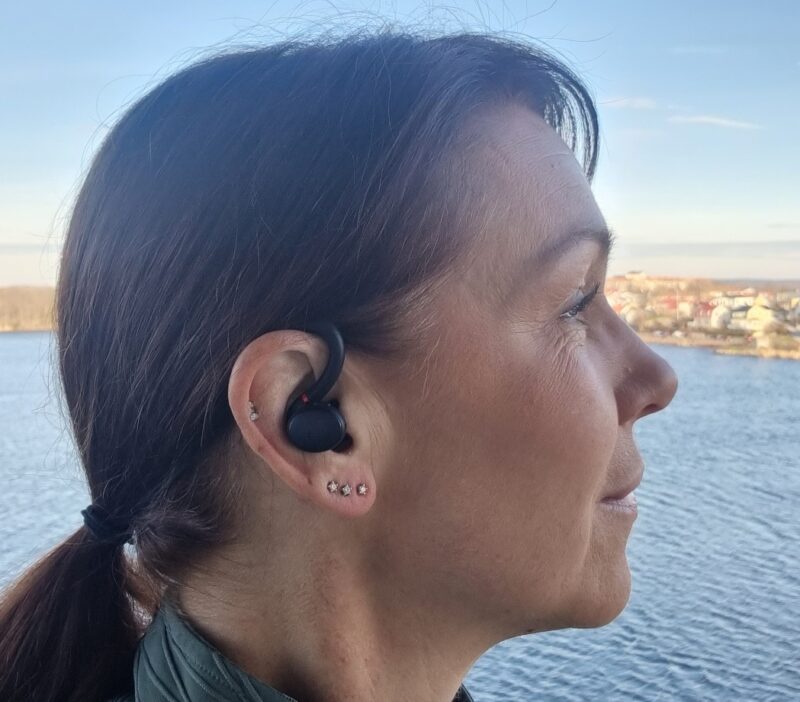 Henkilökohtaisesti koin muotoiluratkaisun erittäin onnistuneeksi. Minulla ei taida olla erityisen suuret eikä pienet korvat, ja koska kuulokkeiden mukana toimitetaan neljät sovitteet, oli vaivatonta löytää sopivat. Kuulokenapit itsessään ovat mukavan pyöristetyt, eikä mikään hankaa tai tunnu epämiellyttävältä, kun työnnän napit korviini. Aluksi minulla on hankaluuksia tajuta, miten korvan ympärille asettuva koukku saadaan paikalleen, mutta hetken yrityksen ja erehdyksen jälkeen homma alkaa toimia ja opin pukemaan kuulokkeet sujuvasti.