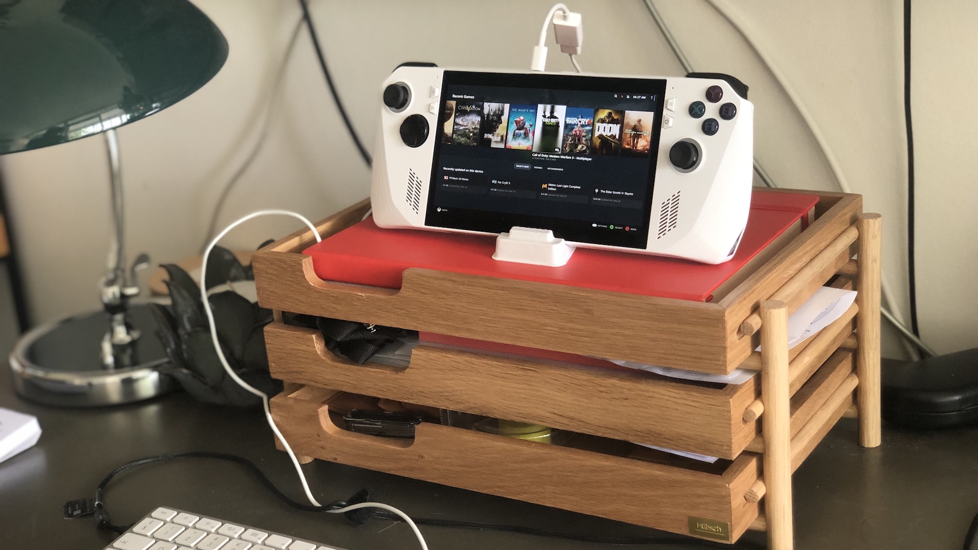 Asus on varustanut koneen Armoury Cratella, joten tärkeimmät pelikirjastot, kuten Steam ja Origin, löytyvät yhden klikkauksen päästä. Steam-sovellus toimii Big Picture Modessa, joka on suunniteltu käsikonsolille ja joka näyttää mahtavalta koko ruudun kokoisena.