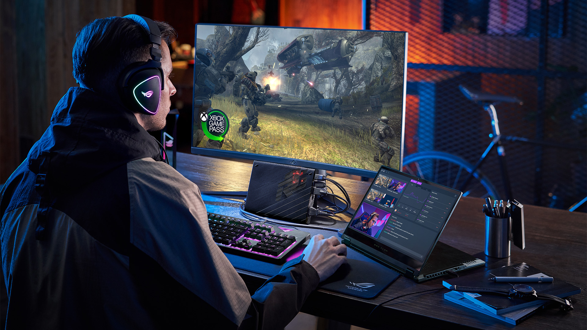 Ratkaisuna pulmaan voi toimia ulkoinen näytönohjain, joka hoitelee raskaimmat työt. Thunderboltin ja PCIe:n ansiosta on entistä helpompaa liittää kaksi laitetta yhteen. En ole kuitenkaan ennen nähnyt keneltäkään näin kompaktia ja tyylikästä ratkaisua kuin Asuksen yhdistelmä; ROG Flow X13 -kannettava ja XG Mobile -näytönohjainboksi.