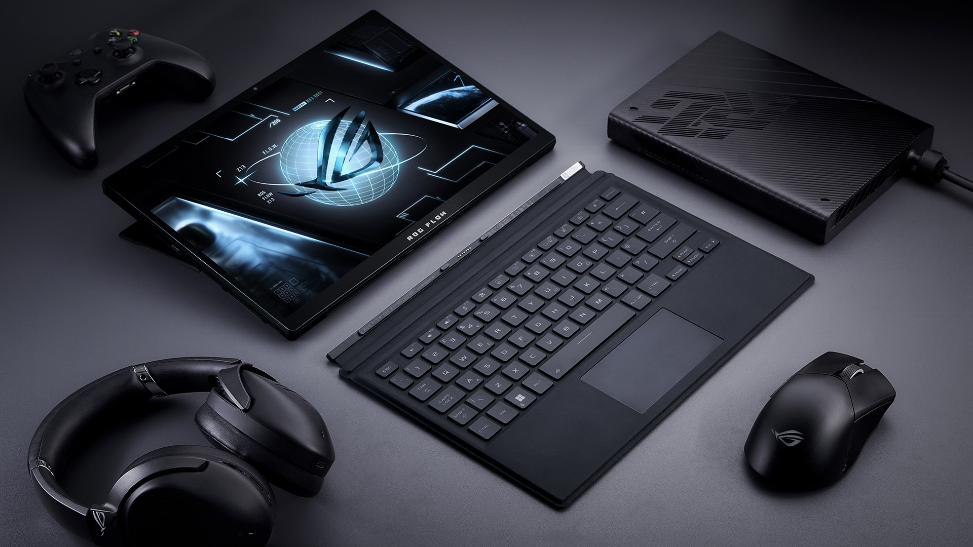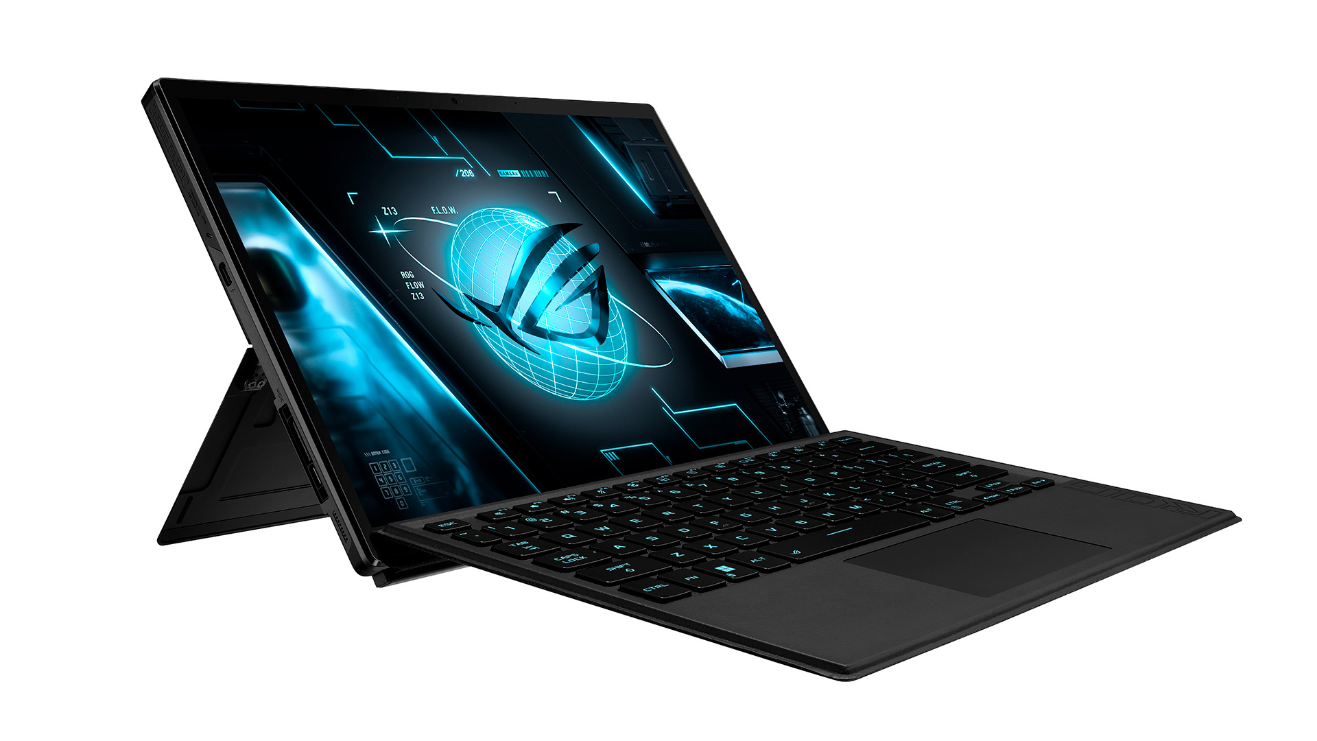 Asus Rog Flow Z13 ei ole perinteinen kannettava, vaan tabletti. Formaatti on tuttu esimerkiksi Microsoft Surface Pro -mallista, jonka tukijalusta ja magneettisesti kiinnitettävä näppäimistö – joka toimii myös näytön suojuksena – tarjoavat tavallisesta kannettavasta muistuttavan käyttökokemuksen.