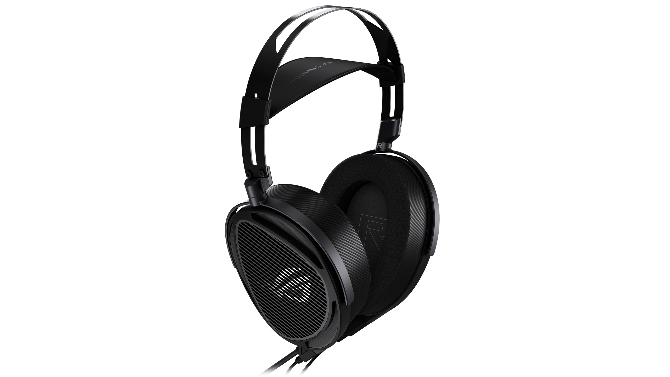 Asus ROG Kithara on jämäkkä avoimen rakenteen pelikuulokemalli, joka lähentelee hifikuulokkeita kiitos 100-millisten planaarielementtiensä, jotka on kehitetty yhdessä Hifimanin kanssa. Kuva: Asus