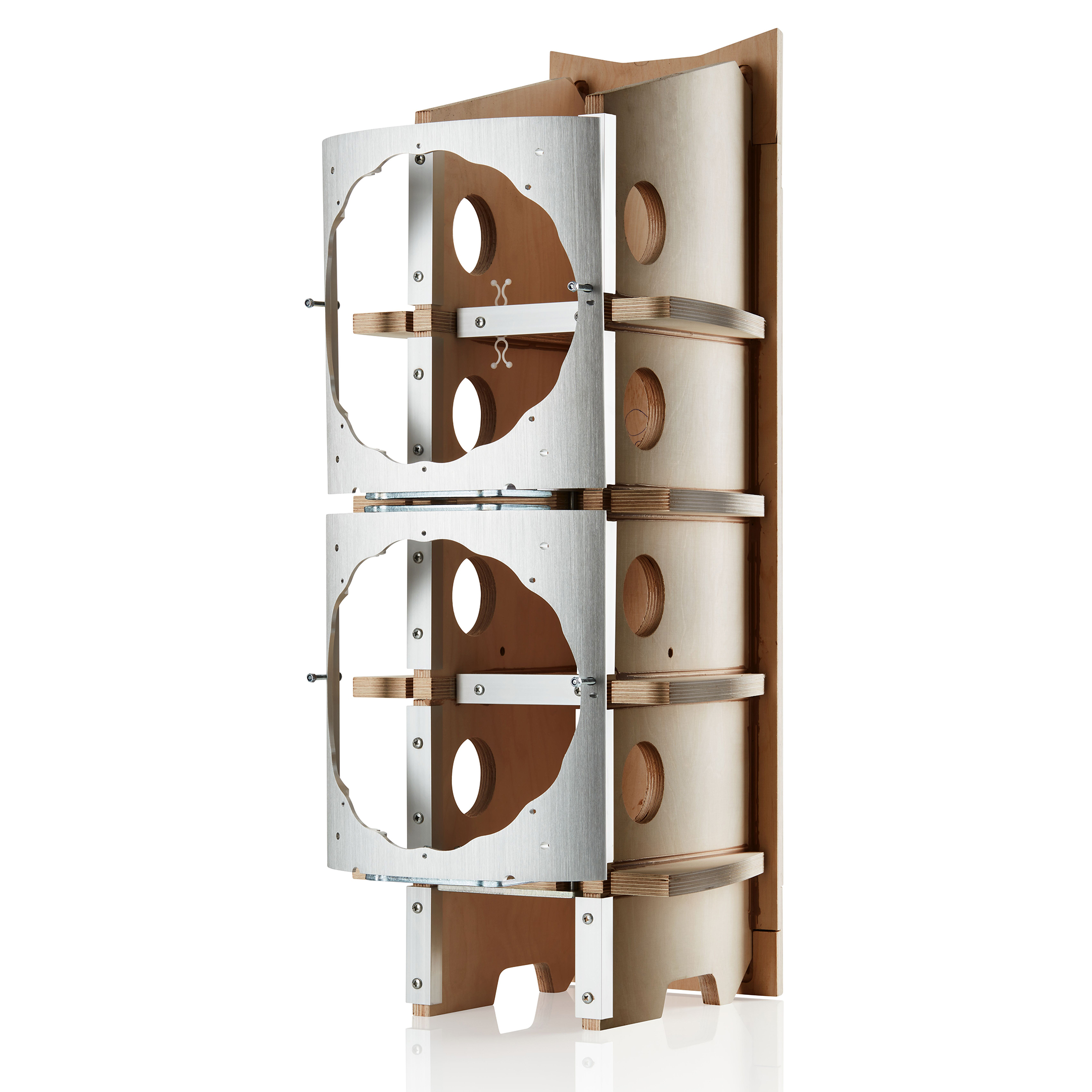 B&W:n sisäkammio on nimeltään Matrix – se on runko, joka kannattelee kaiuttimen ulkokuorta. Uusimmassa mallissa limittäiset paneelit vahvistavat seiniä joka suunnassa vähentäen samalla värähtelyjä. Eniten kuormittuvat kohdat on vahvistettu alumiinilla. B&W uskoo 801 D4:n Matrix-rakenteen olevan kaikkien aikojen paras, eikä minulla ole syytä epäillä.