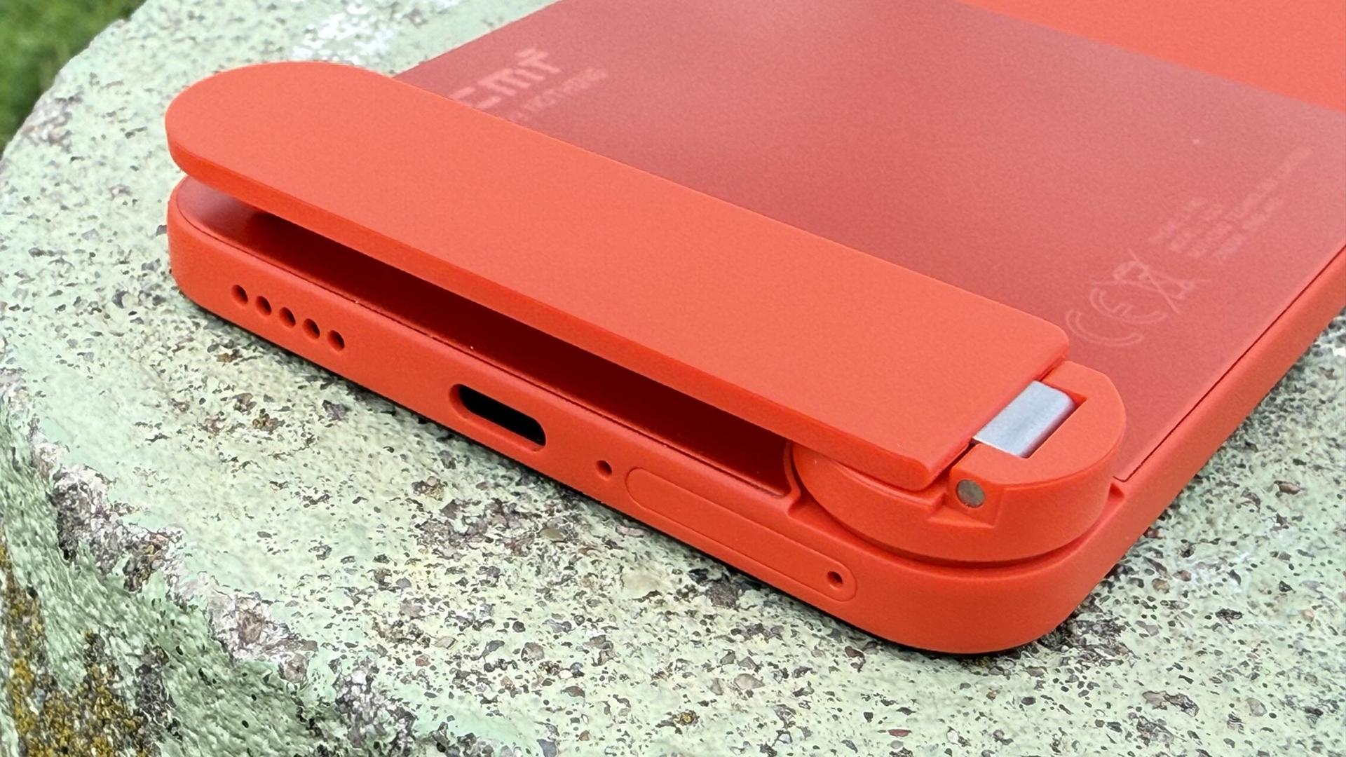 Nothingin CMF-puhelimille ainutlaatuinen ominaisuus eli modulaarisuus on toki tarjolla tässäkin mallissa. Puhelimen oikeassa alareunassa on suuri ruuvi, johon halutut lisävarusteet voi kiinnittää. Jos omistaa jo Phone 1 -mallin, voi samoja lisävarusteita kierrättää uuteenkin puhelimeen, esimerkiksi tukijalan ja hihnan, sillä ruuvikiinnitys on säilytetty samanlaisena. Todella käytännöllinen ja nerokas systeemi!