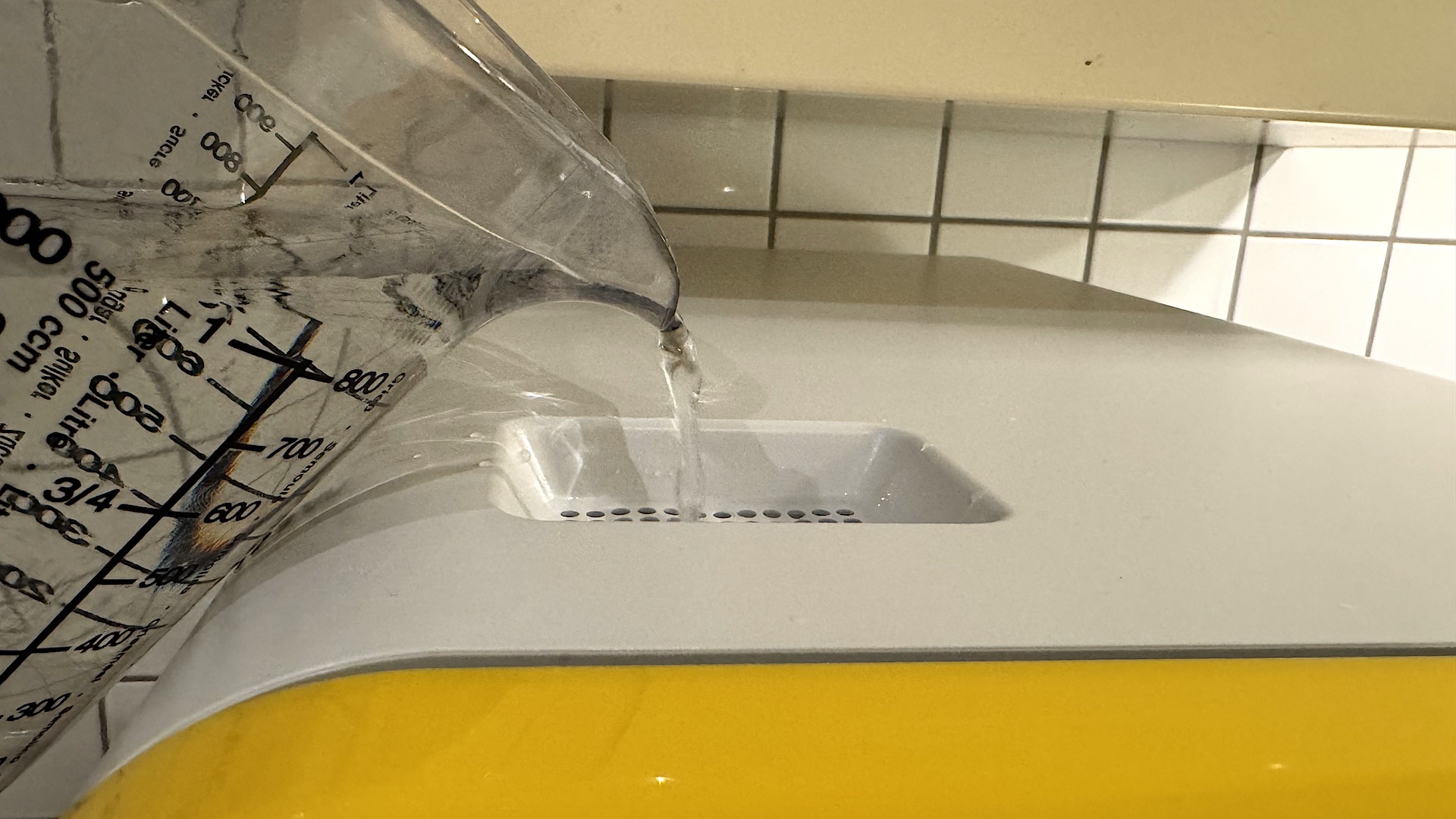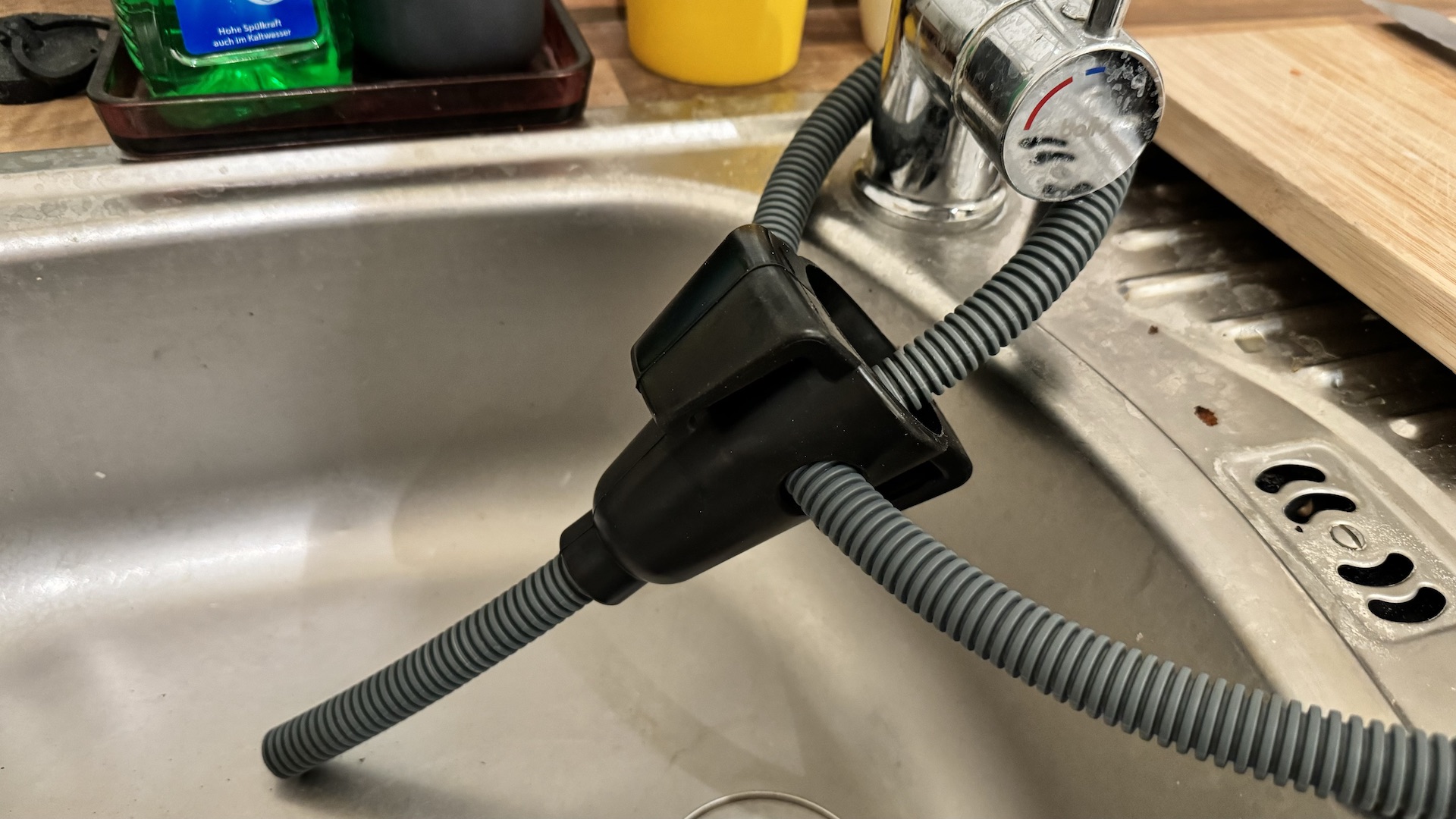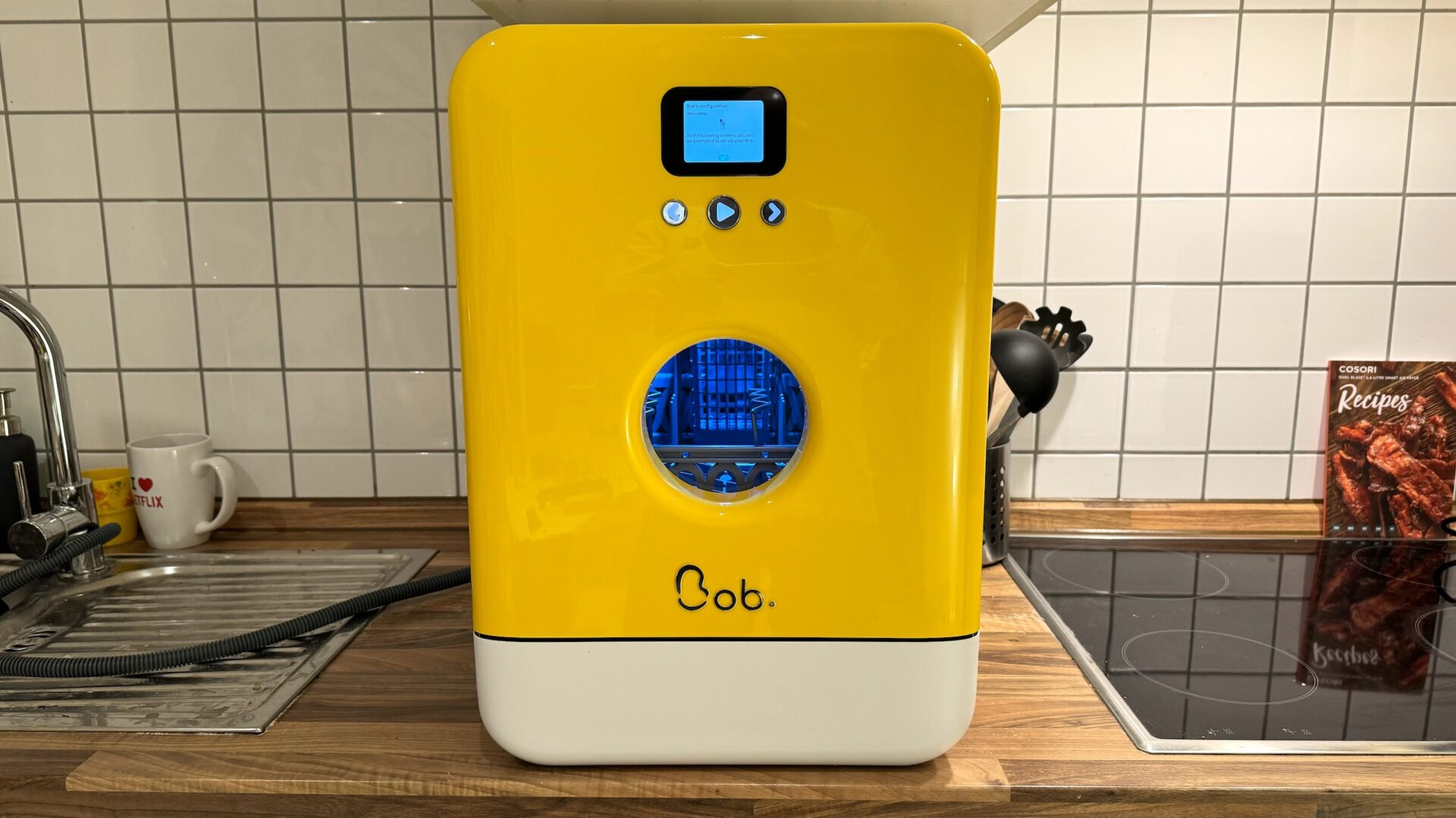 Jos ei valitse kiinteää vesiliitäntää, on vesisäiliö täytettävä ennen joka käyttöä, mikä vie aina pari minuuttia aikaa. Kone on kivannäköinen ja on melkein Netflixiä hauskempaa viihdettä katsella, kun Bob huuhtelee neonvaloilla valaistuja astioita!