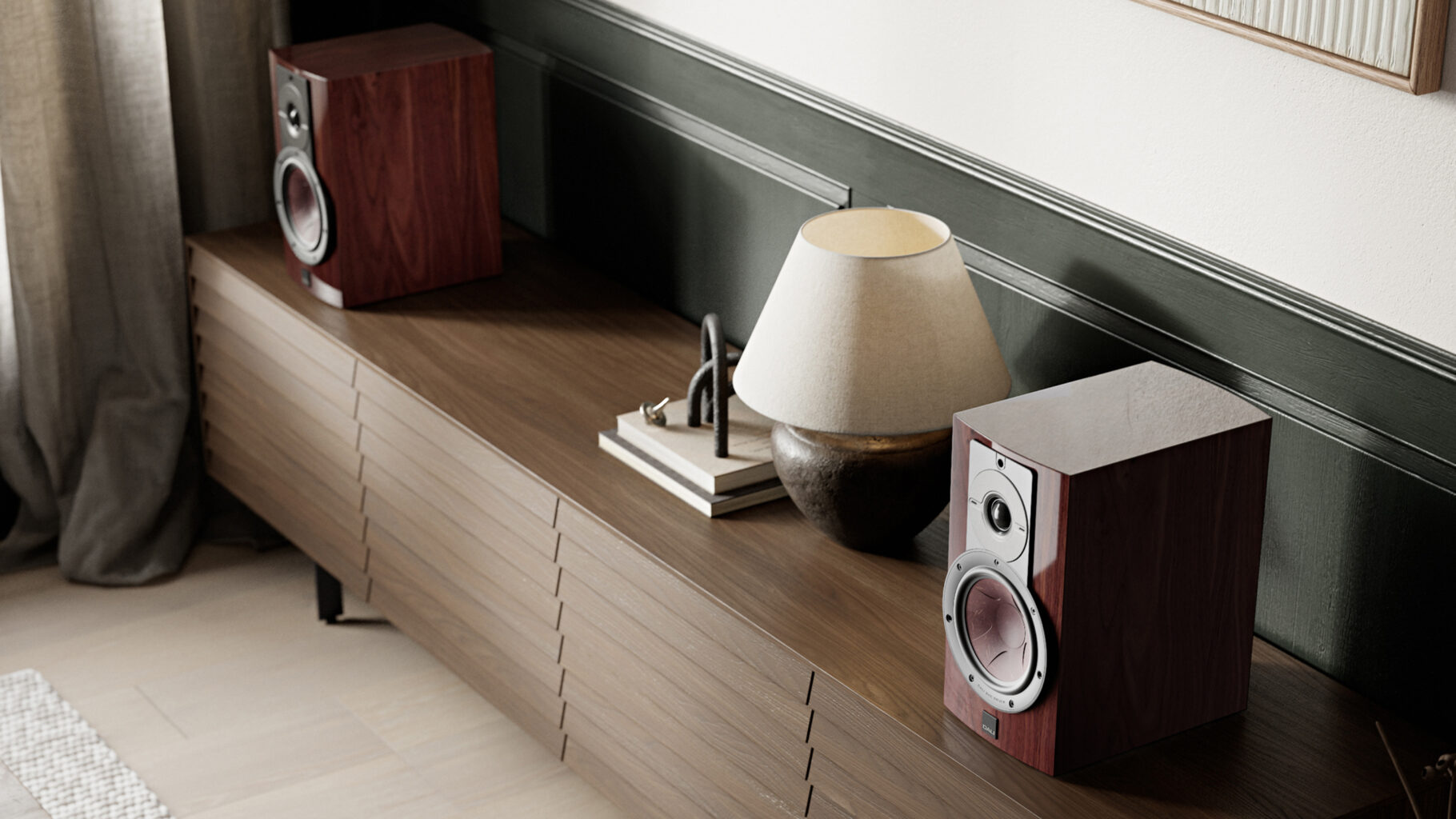 Rubikore 2:n voi sijoittaa tasolle, mutta parhaan lopputuloksen saa jalustoja käyttäen. Dali suosittelee suuntaamaan kaiuttimet suoraan eteenpäin. Kuva: Dali
