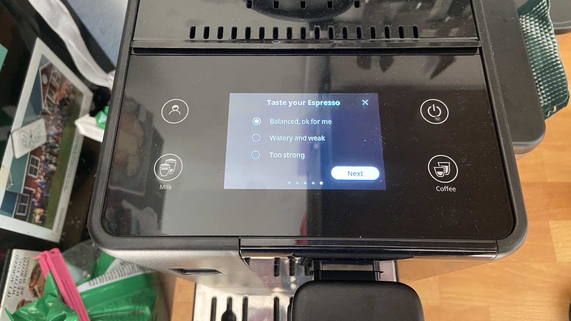 Rivelia on tyypillinen DeLonghin kone, joten jos merkki on tuttu, on Riveliakin tuttu. Pääosin tämä tarkoittaa hyvää. Maitokannu on helppo puhdistaa, vesisäiliö on hyvän kokoinen pienelle koneelle ja kosketusnäytössä on selkeät valikot. Itse asiassa kone on helppokäyttöisempi kuin muutaman vuoden ikäinen huippumalli Maestosa. Näytön värit ovat paremmat ja se tottelee nopeammin, mutta se on melko pieni, mikä voi aikaisina aamuina johtaa inhimillisiin virheisiin… Ohjelmisto on todella yksinkertainen, mikä johtuu osaksi siitä, ettei koneessa ole yhtä paljon räätälöitäviä asetuksia kuin kalliimmissa malleissa.