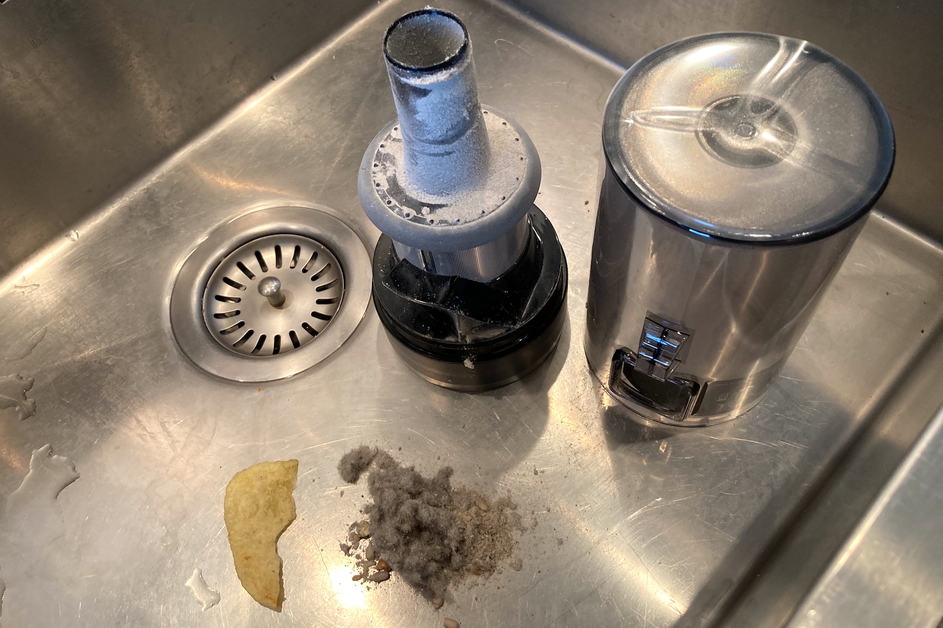 Sekä säiliö että suodatin on vaikea puhdistaa, käyttipä sitten mukana tulevaa harjaa tai ei. Esimerkiksi Mova on keksinyt tähän paremman ratkaisun: Mova X4 Pro -mallissa suodattimen saa käännettyä saranan varassa ulos, jolloin se on helpompi huuhdella hanan alla.