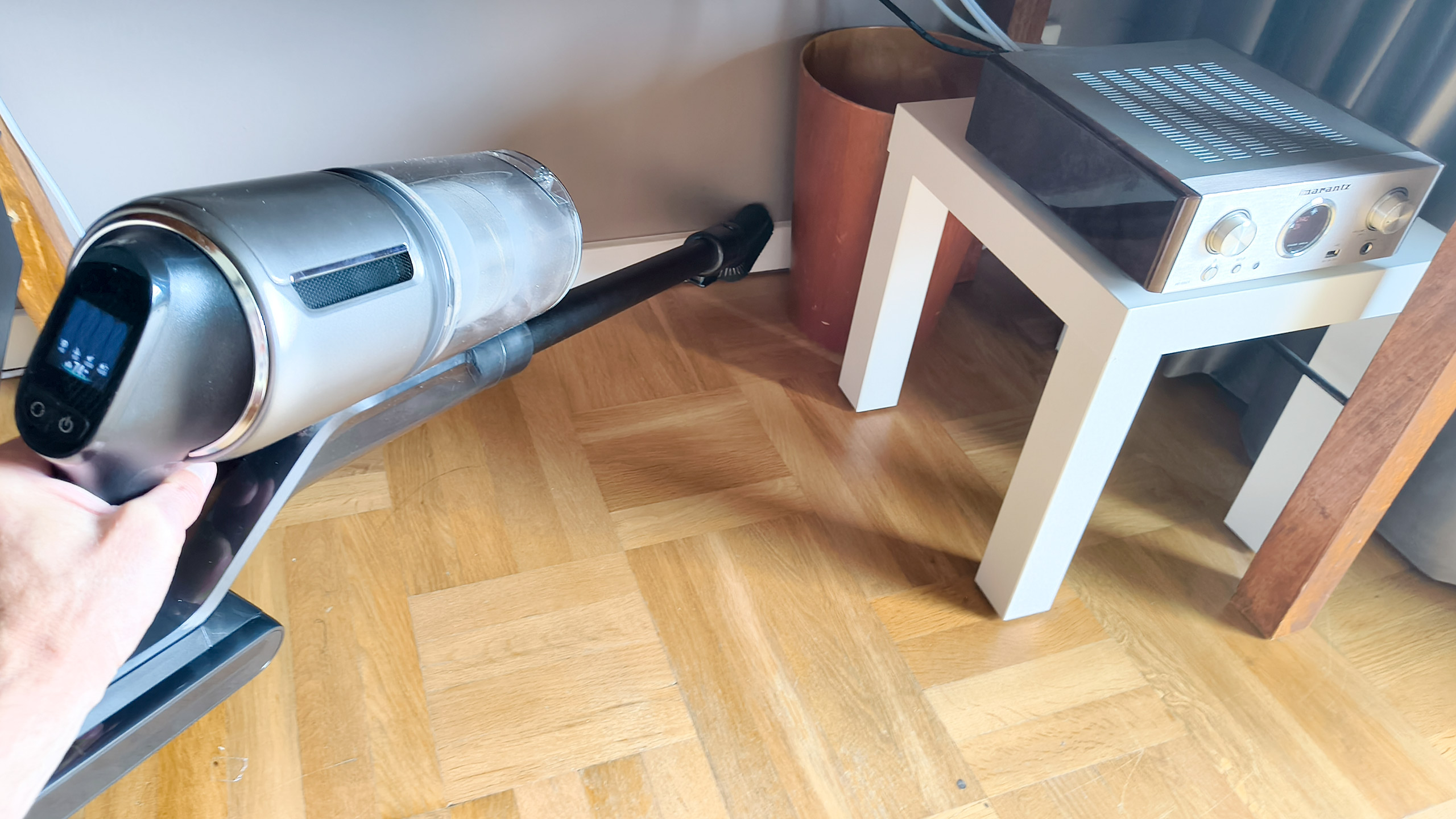 Varsi-imuri ladataan lattiajalustan kautta eikä varresta, kuten joissakin aiemmissa malleissa. Se on kätevää sekä käytännöllisestä että esteettisestä syystä: nyt johtoa ei tarvitse irrottaa, kun aloittaa imuroinnin, eikä myöskään tarvitse katsella ilmassa roikkuvaa piuhaa.