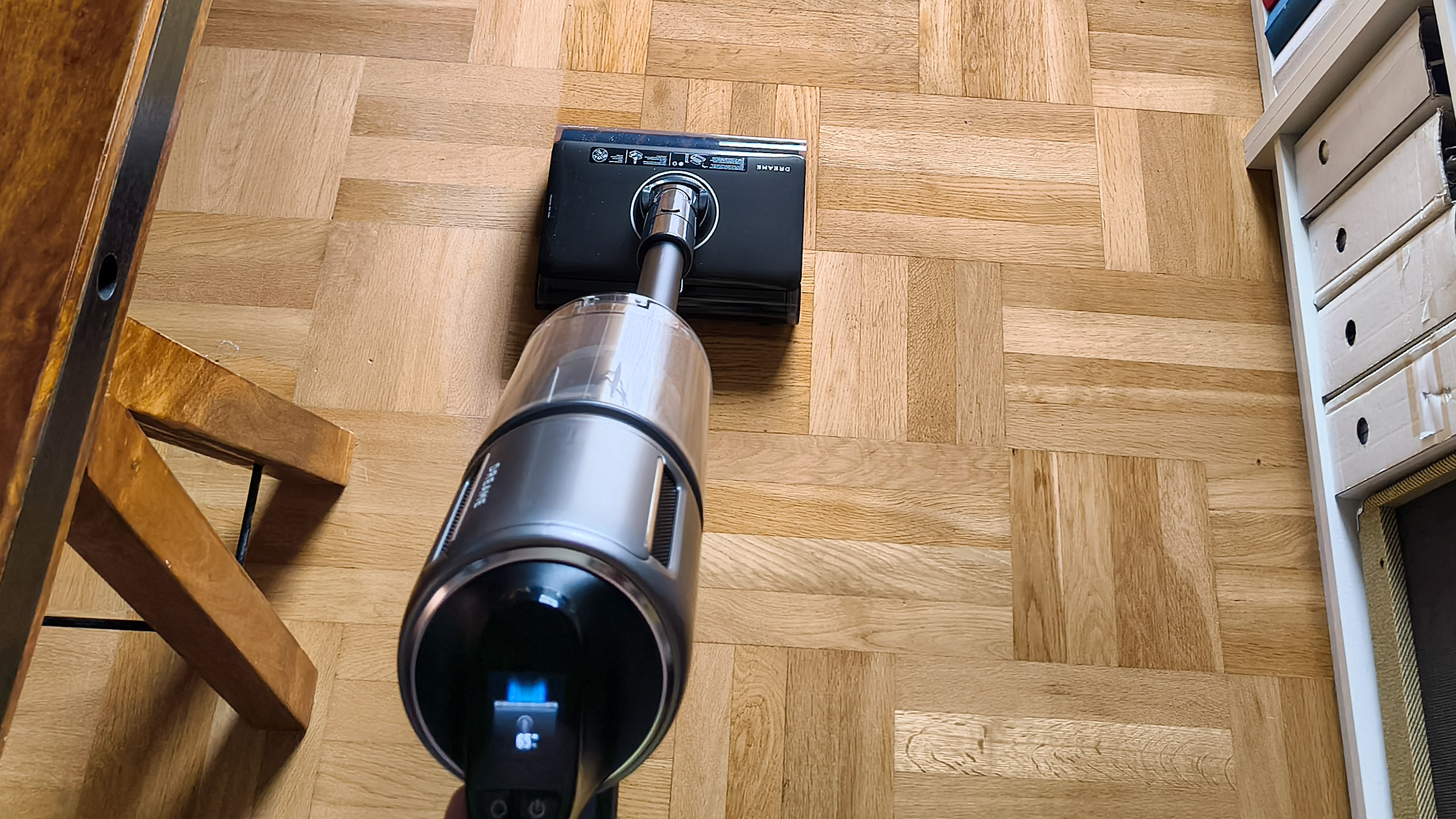 Sitten laite käynnistetään ja aletaan kierrellä. Moppaustoiminnolla ei ole eri asetuksia, vaan se on vain päälle ja pois. Akunkesto mopatessa on melko pitkä. Dreamen mukaan akku kestää lattioita pestessä 40 minuuttia, ja oman testini mukaan se ei ole liioittelua. Imuroidessa akun luvataan kestävän 6–90 minuuttia – turboasetuksella kesto on lyhyin ja ekoasetuksella pisin. Väliin jää automaattiasetus, joka säätää imutehoa pinnan ja lian määrän mukaan.