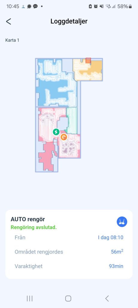 Sekä imuroinnin että moppauksen jälki on hyvää. Ecovacs Deebot T30 Omni suoriutuu noin 60 neliömetrin siivouksesta 90 minuutissa, mutta valitsinkin tehosiivouksen.