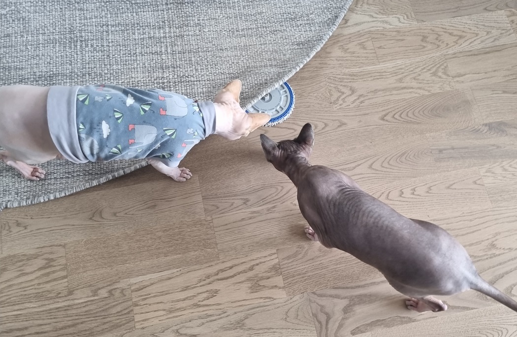 Sovellukseen tutustumisen jälkeen lähetän T30 Omnin neitsytmatkalleen. Valitsen heti kättelyssä sekä imuroinnin että moppauksen. Hetken kuluttua huomaan kissojeni olevan tavattoman kiinnostuneita keittiön matosta. Imuri on pudottanut yhden moppauspään maton alle. Kun siivouskierros on ohi, loistaa T30 Omni poissaolollaan. Ok, valmistaudun henkisesti haastavaan testijaksoon. Huoh.