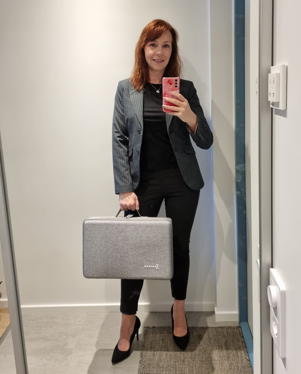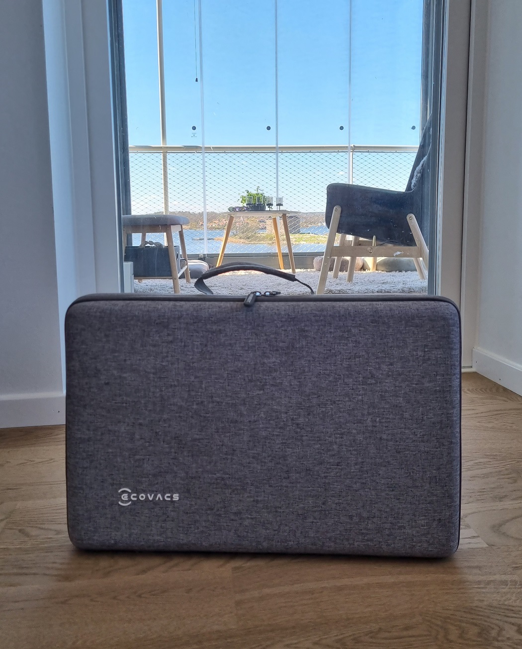 Olen vähän lääpälläni jo ennen kuin olen edes nähnyt koko laitetta. Robotti asustelee siistissä harmaameleeratussa laukussa, joka näyttää läppärilaukun, matkalaukun ja salkun risteykseltä. Tämä lupailee pelkkää hyvää, vai mitä?