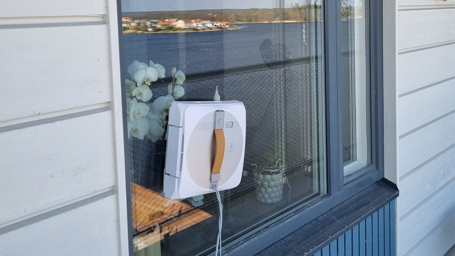 Olemme juuri muuttaneet uuteen kotiimme, ja ympäristö on lähinnä rakennustyömaata. Koska ikkunat ovat todella likaiset ja robotin käyttäminen jännittää, huuhtelen ensin pahimmat pölyt omin voimin. Kun ikkuna on kuivunut, noudatan vain lähes lapsellisen helppoja ohjeita, ja pesuri alkaa kulkea ikkunan pintaa pitkin.