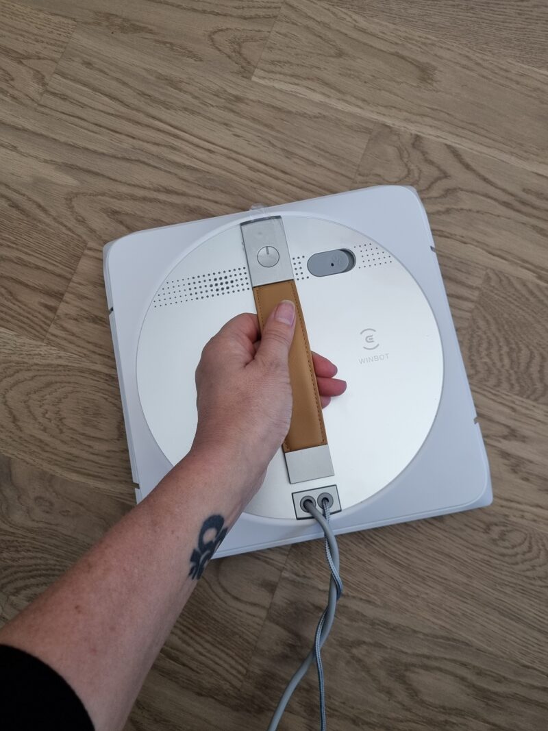 Aina on tietysti hyvä olla sekä vyö että henkselit – varsinkin tilanteissa, joissa on päästämässä robotin liikkumaan ikkunan pintaa pitkin ja sen yhtäkkinen tippuminen niskaan voisi olla hengenvaarallista. Winbot ei toimi akulla, vaan lähistöllä tarvitaan pistorasiaa. Robotissa on silti akku kaiken varalta, joten se pysyy pinnassa puolisen tuntia virtakatkonkin aikana. Sinä aikana se ei tosin pese, mutta pysyypähän ainakin paikoillaan. Turvallisuus on pidetty mielessä myös siinä, että laitteessa on karabiinihaalla varustettu turvaköysi.