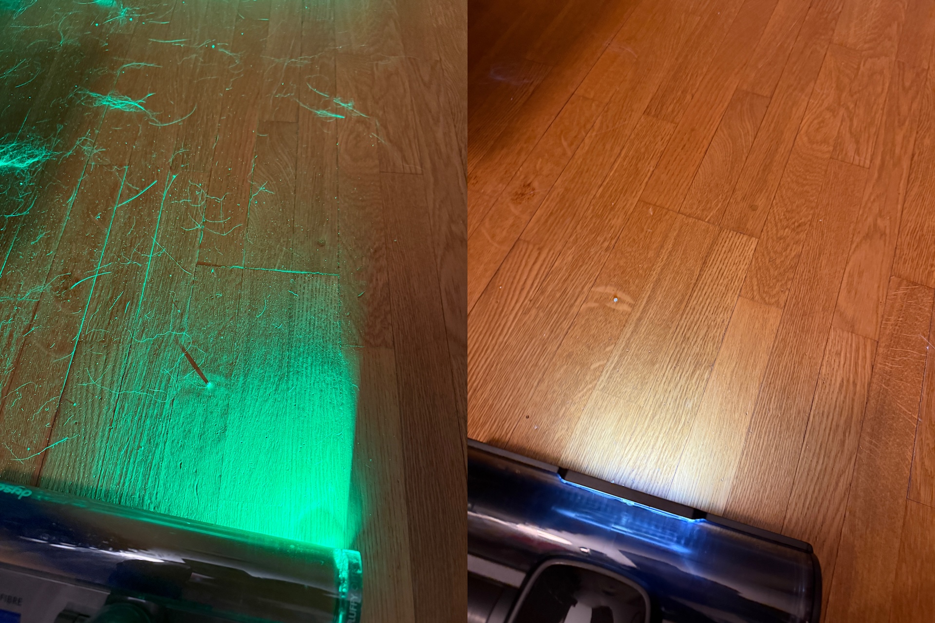 Moottorisuulake toimii todella hyvin kovilla lattioilla, eikä laservalo paljastanut juuri lainkaan pölyä imuroinnin jälkeen. Imurin oma valo on täysin hyödytön pölyn bongaamisessa. Moottorisuulake jäi helposti kiinni litteisiin mattoihimme, mikä on ongelma, joka vaivaa käsittämättömän useita testaamiani varsi-imurimalleja. Tällaisessa tilanteessa olisi hyvä, että pyörivän harjan saisi sammutettua. Harjaan ei kuitenkaan jää kiinni pitkiä hiuksia tai karvoja, mitä sekä pitkähiuksiset että lemmikinomistajat arvostanevat. Sekä pölysuulake että rakosuulake toimivat kuten pitääkin.