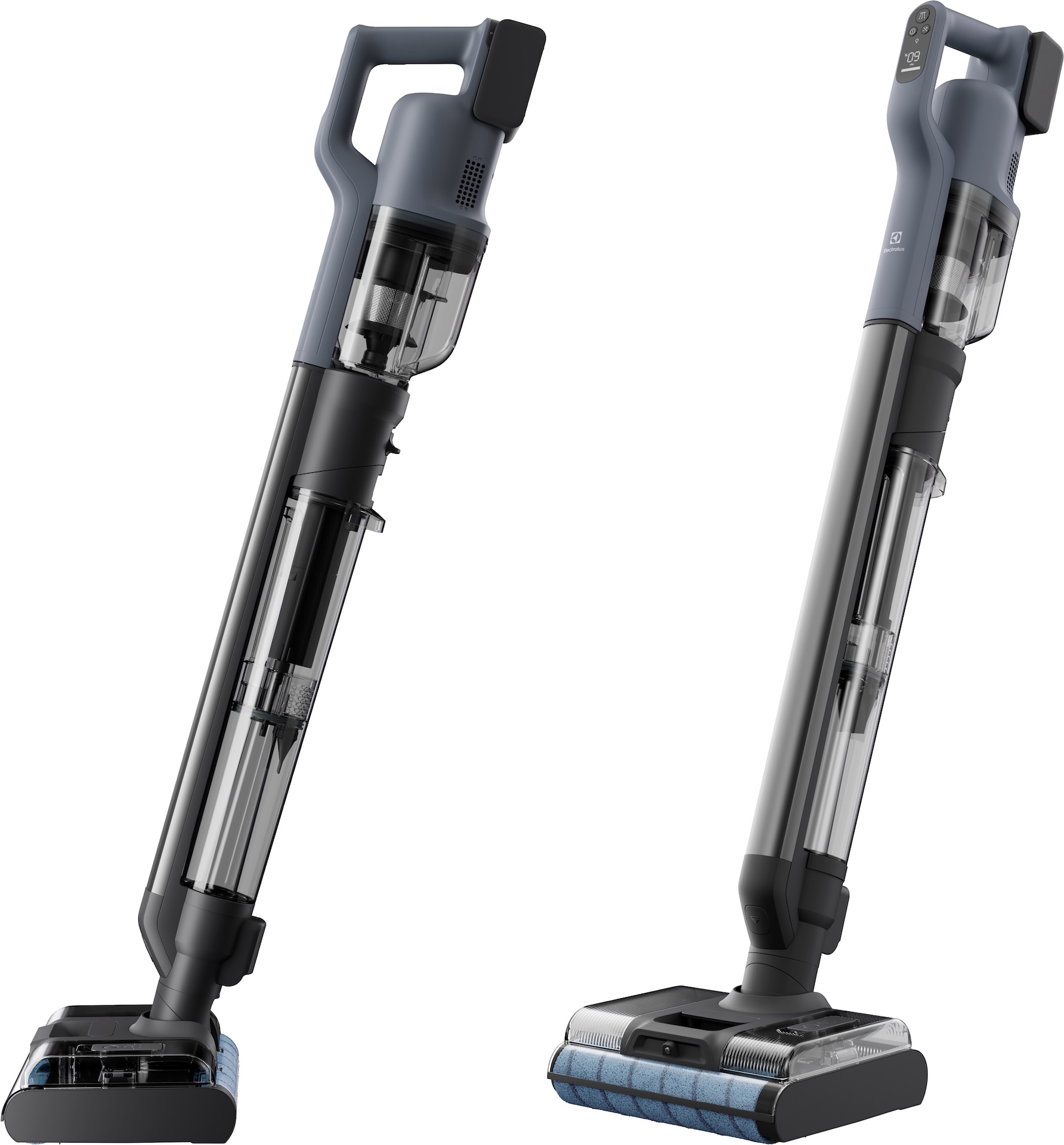 Yhdistelmäimuri on ensimmäinen näkemäni Electroluxin malli, jossa on pieni värinäyttö yksinkertaisen tekstinäytön ja valojen sijaan. Näytöltä näkee jäljellä olevan akun varauksen ja valitun siivoustehon, mutta ennen kaikkea erilaisia symboleja, jotka kertovat, että jotain on korjattava. Hyvin pedagoginen lähestymistapa. Tavallisen virtanapin lisäksi on suihkenappi moppia varten ja imutehoa säätävä nappi, jonka vaihtoehdot ovat auto, high ja boost.