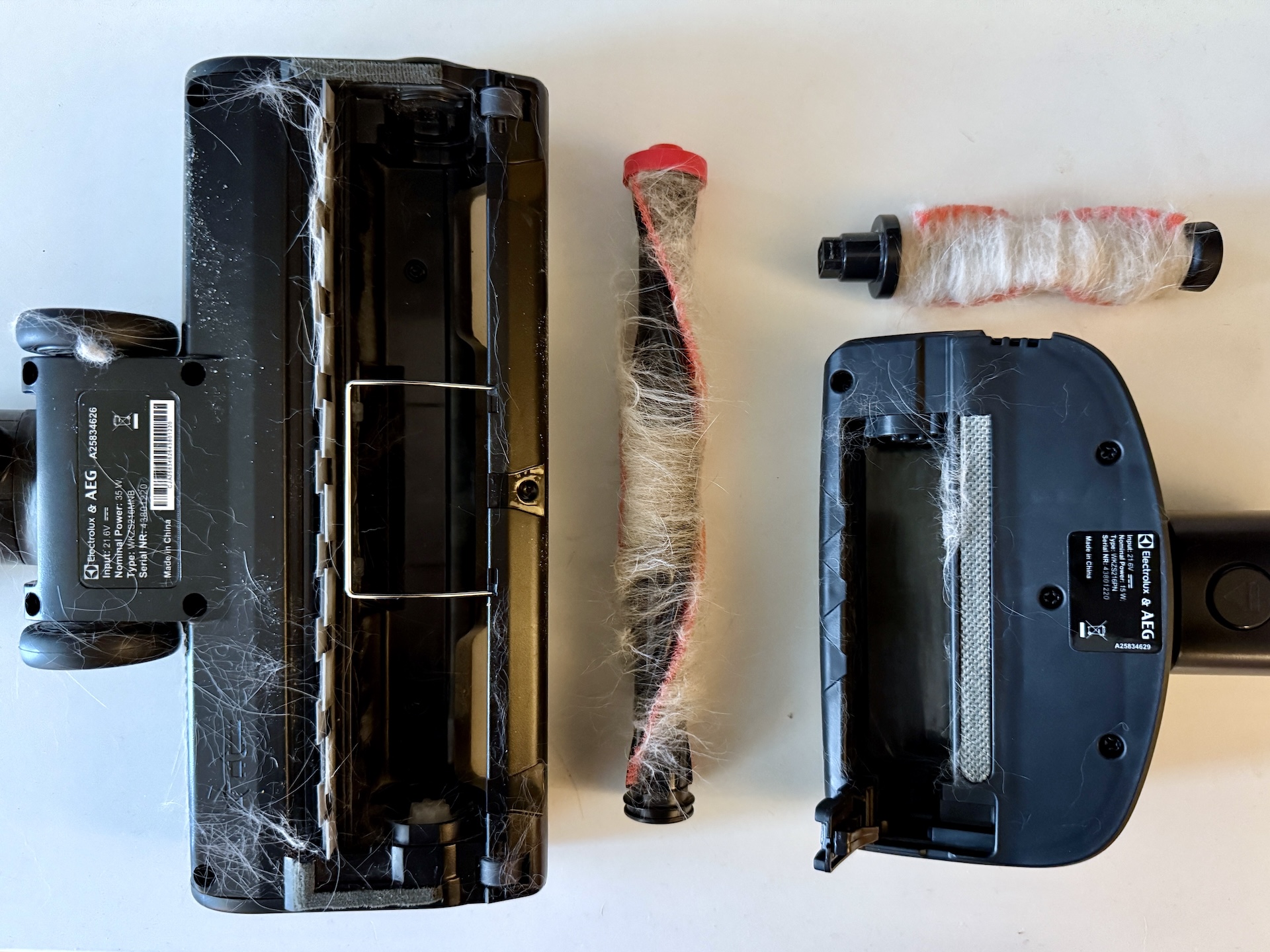 Moottorisuulake tuottaa iloisen yllätyksen. Usein niiden ongelma on, etteivät ne onnistu olemaan tehokkaita sekä lattialla että matoilla, mutta tällä kertaa lattialle ei jäänyt muruakaan ja mattokin oli kuin uusi, vaikka annoin kissojen kiehnätä matolla tavallista pidempään ennen siivoamista. Electroluxin suulake on myös yksi harvoja, jotka eivät ole jääneet kiinni lyhytnukkaiseen mattooni. Jos jotain moitittavaa on, niin suulakkeen harjaan jää paljon karvaa kiinni. Monilla kilpailijoilla on erilaisia ratkaisuja harjojen takkuuntumisen estämiseksi, mutta tässä asiaa ei ole juuri mietitty. Onneksi harja irtoaa helposti, jolloin karvat saa siitä irrotettua käsin. Imurin ajovalo on tyhjää parempi, mutta ei valaise pölyä yhtä tehokkaasti kuin Dysonin laser.