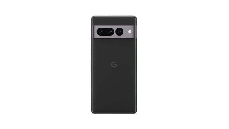 Vaikuttaa olevan mahdotonta tehdä nykyaikana puhelinta, joka erottuisi joukosta – lukuun ottamatta Nothing Phone (1) -mallin tyylikokeilua. Google ei ole lähtenyt kokeilulinjalle, vaan Pixel 7 Pron etupuoli on pelkkää lasinäyttöä kuten kaikilla muillakin saman luokan puhelimilla. Kehys on kierrätettyä alumiinia. Etukamera on tavanomaisella paikallaan ja takaosa varsin tyylikäs: lasipintaa rikkoo alumiininen nauha, johon kamerat on asennettu. Pro-mallissa niitä on kolme: 50 Mp:n laajakuva, 12 Mp:n superlaajakuva ja 48 Mp:n tele 5-kertaisella optisella zoomilla. Telelinssi on niin pitkä, että se on kallistettu 90 astetta ja sijoitettu pienen ”periskoopin” sisään. Samaa ideaa käytti myös Huawei P30 Pro.