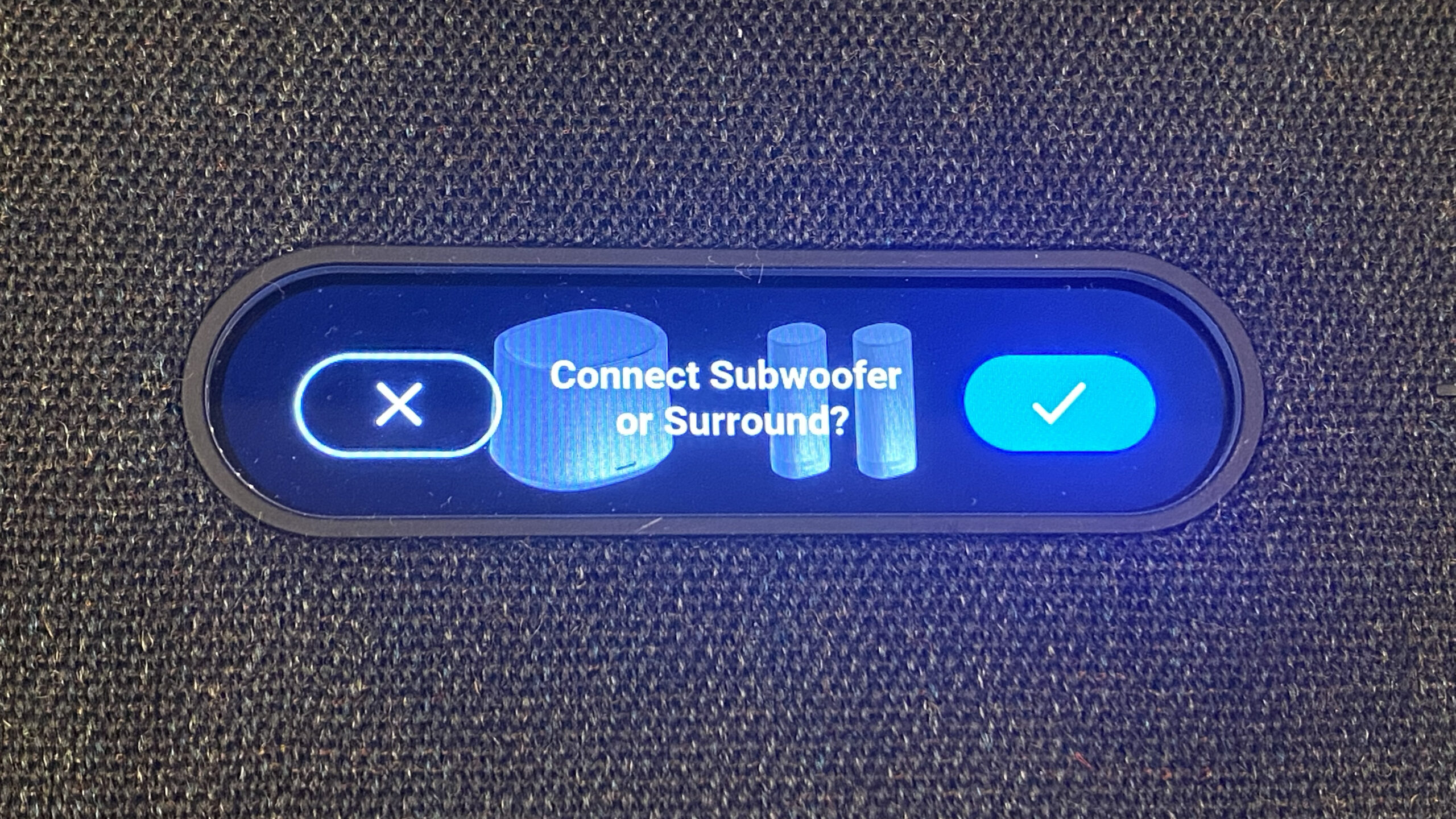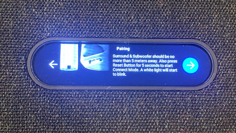 Jos omistaa Citation Surround -takakaiuttimet ja Citation Subin, ne saa yhdistettyä kosketusnäytöstä, joka löytyy ikävä kyllä soundbarin päältä eikä edestä. Näytöstä pyyhkäistään esiin Settings, valitaan Speaker Setup ja painetaan Pairing-valintaa. Sub ja Surround löytyvät erikseen. Kun kaikki kaiuttimet on yhdistetty, pitää huonekorjaus tehdä uudelleen.