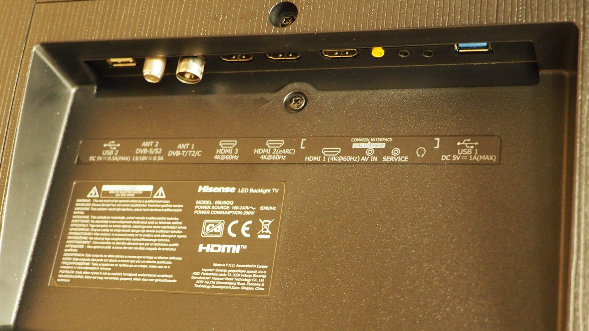 Hisense U8GQ on varustettu neljällä 2.0b-tyypin HDMI-sisääntulolla. Kannattaa huomioida, että tv:ssä ei siis ole kaikkia uusimman 2.1-standardin ominaisuuksia. Se kyllä tukee eARC-äänenpalautusta, vaihtelevaa virkistystaajuutta (VRR) sekä automaattista peliasetusta (ALLM).