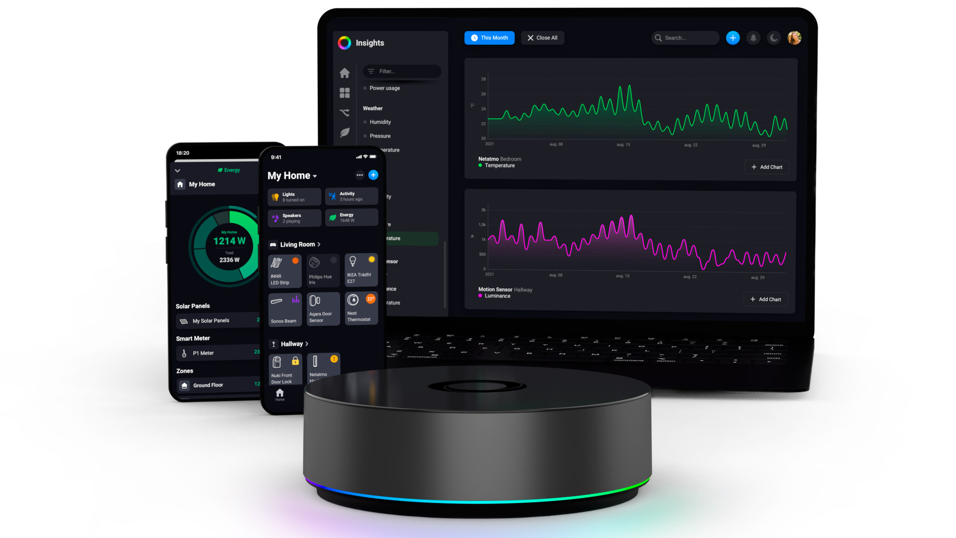 Homey tukee yli tuhatta eri brändiä ja 50 000 älykotituotetta, ja Homey-sovelluksesta voi valita, miten oma älykoti toimii. Sovelluksessa voi esimerkiksi luoda Flow- tai Advanced Flow -automaation, joka yhdistelee eri valmistajien laitteita sekä kustomoida aloitusnäkymän mielekkääksi ja helpoksi. Laite tallentaa kaiken datan paikallisesti eikä lähetä mitään pilveen, joten yksityisyys pysyy suojattuna.