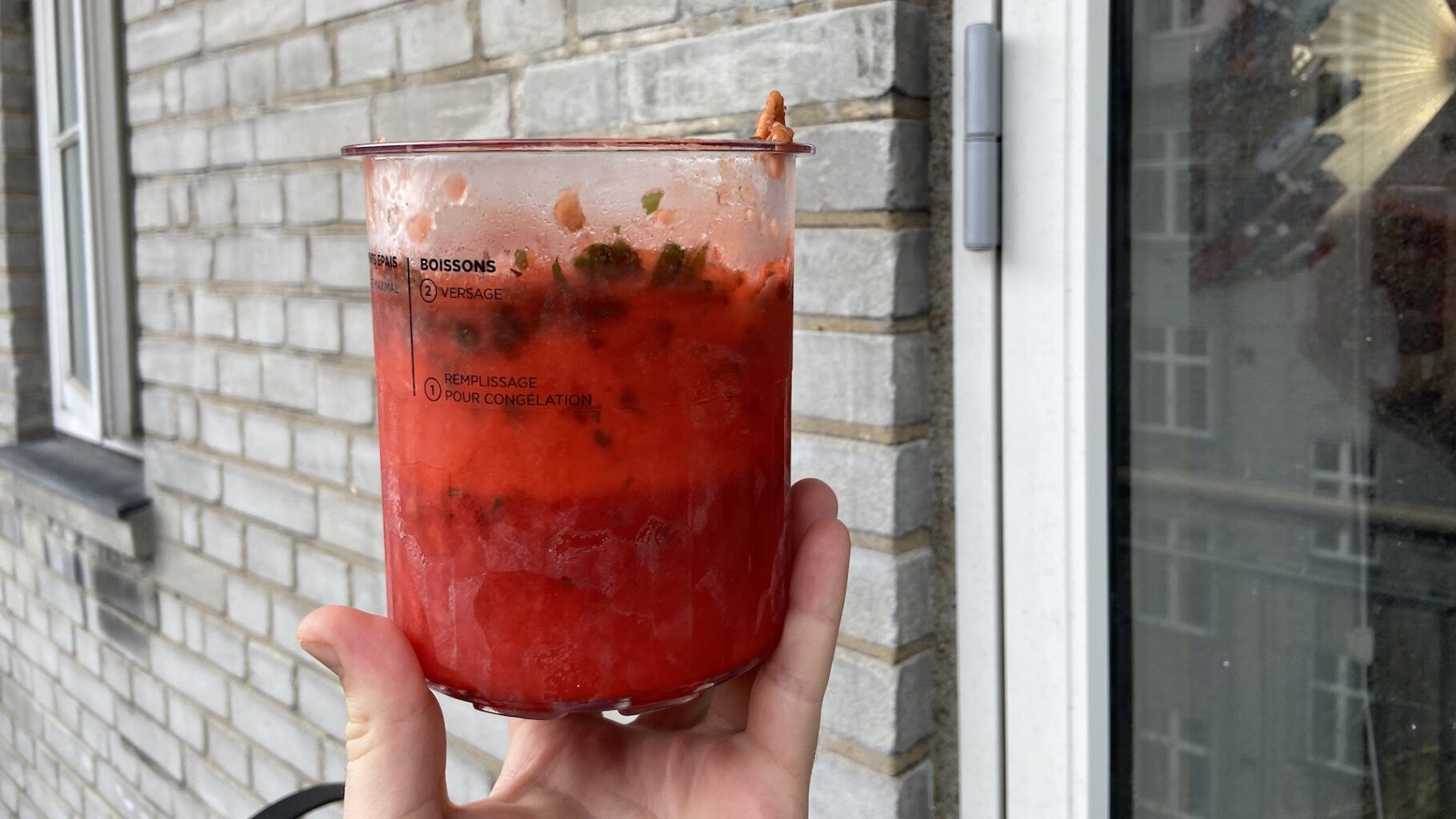 Jos haluaa juotavan slushin, voi massan sekaan lisätä vettä (tai tequilaa!) ennen sekoitusta. Silloin koostumuksesta tulee täydellinen.