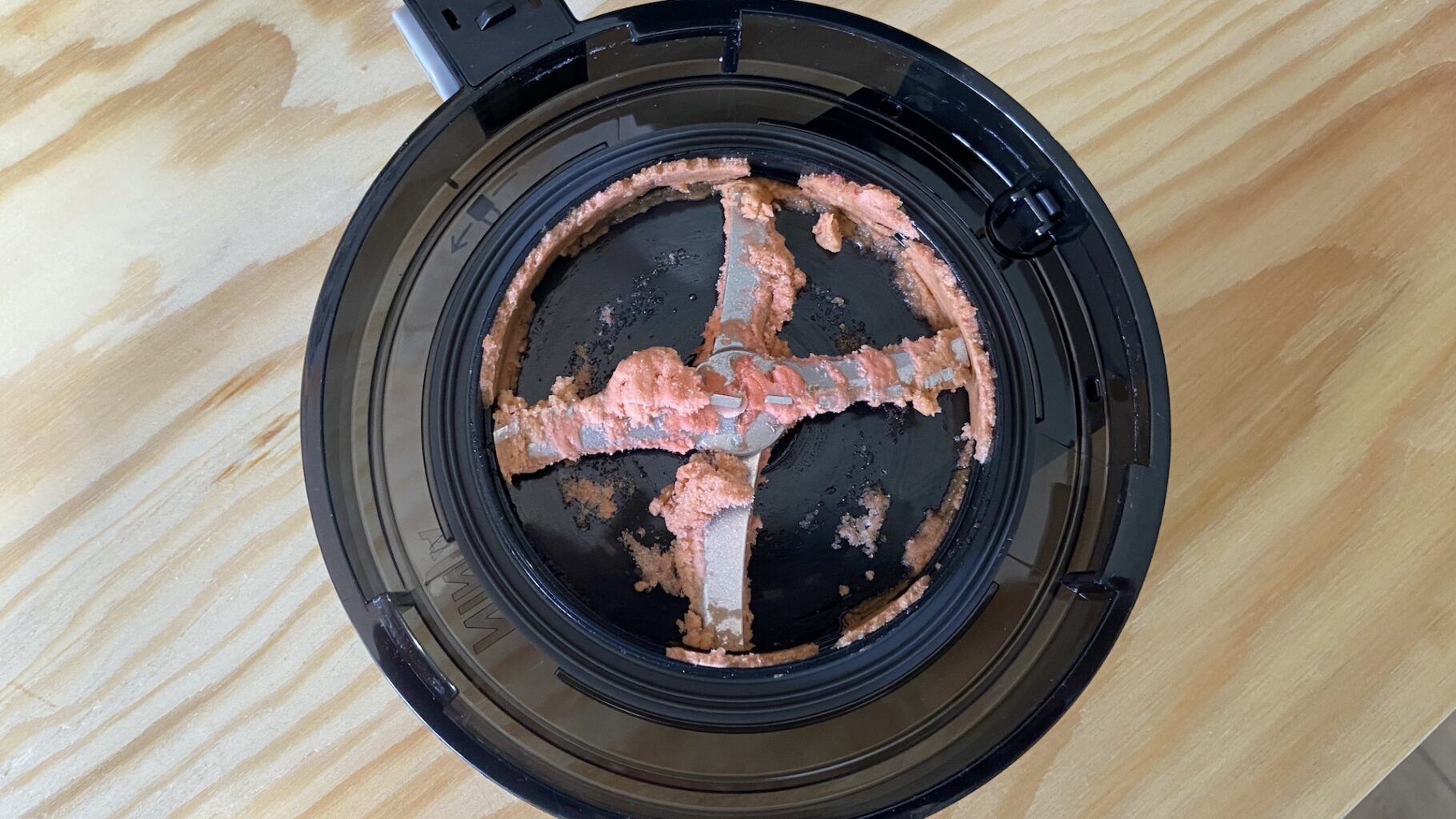 Ninja Creamin suurin miinus on sen ääni. Minuutin pituudesta tulee todella tietoiseksi, kun kuuntelee koneen metelöintiä. Sitä ei siis kannata käyttää myöhään illalla, jos ei halua herättää kaikkia muita. Lisäksi koneen tilavuus on pienempi kuin perinteisillä jäätelökoneilla: yhteen rasiaan mahtuu 709 ml. Jos valmistaa juotavaa, pitää tilaa jättää myös nesteen lisäämiselle, mikä pienentää tilavuutta entisestään.