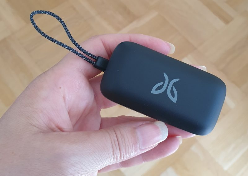 Kuulokkeet pysyvät tallessa tyylikkäässä kotelossa, joka ladataan tavallisella USB-C-johdolla. Kotelossa on pieni lenkki, josta sen voi ripustaa koukkuun, jottei se pääse hukkumaan. Jos sellainen vahinko sattuisikin, on Jaybirdilla Find My Buds– ja jopa Find My Case -nimiset toiminnot, joista jälkimmäinen taitaa olla ainoa laatuaan markkinoilla. Jos siis kuulokkeet sattuvat kotelon sisällä sen hukkuessa, pitäisi koko komeus pystyä paikallistamaan kerralla. Hyvä idea, mutta kun kuulokkeet ovat kotelon sisällä, ei niistä kuuluva merkkiääni tahdo kuulua. Kotelossa toki vilkkuu ledvalo huomiota herättämään, mutta silti ominaisuus ei ihan vakuuta – ehkäpä tätä kannattaisi jatkokehittää vielä?