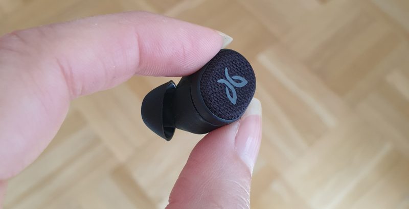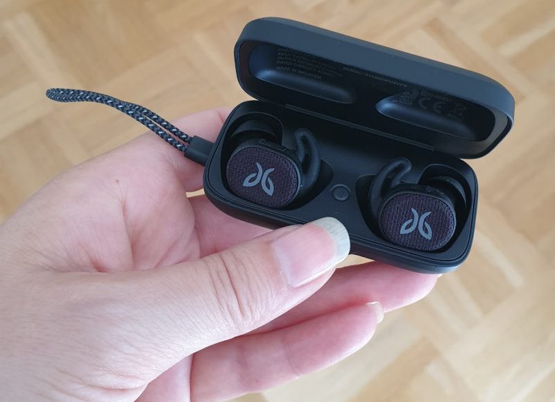 Kokemukseni nappikuulokkeista on, että ne istuvat harvoin hyvin. Yleensä ne ovat vähän sinne päin ja jonkin ajan kuluttua alkavat tuntua epämiellyttäviltä. Jaybird Vista 2 toimitetaan kolmen erikokoisen kumisovitteen kera: isoimmissa on siivekkeet ja pienimmässä ei. Kannattaa testailla kaikkia ja myös muistaa, että oikeaan ja vasempaan korvaan saattaa sopia keskenään erikokoiset sovitteet. Itse löysin vaihtoehdoista täydellisesti istuvat! Treenaamiseni ei sisällä erityisiä akrobatiatemppuja, mutta silti mielestäni on hankalaa löytää liikunnassa mukana pysyvät kuulokkeet. Vista 2 pysyy paikoillaan, vaikka hiki virtaisi.
