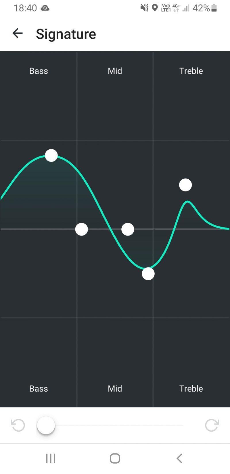 Lehdistötilaisuudessa kerrottiin, että ääniasetukset ovat niin hyvät, ettei soundia tarvitse säätää. Ja ääni on ihan ok mutta ehkä hiukan liian sulkeutunut, jos nyt nirsoksi heittäydytään – ja niinhän minä teen, kun testistä on kyse. Äänen säätämisen pitäisi kylläkin onnistua helposti sovelluksesta valitsemalla jokin valmiista vaihtoehdoista – Signature, Warmth, R&B Jams, Bring the Bass ja niin edelleen – tai tehdä säädöt alusta alkaen itse.
