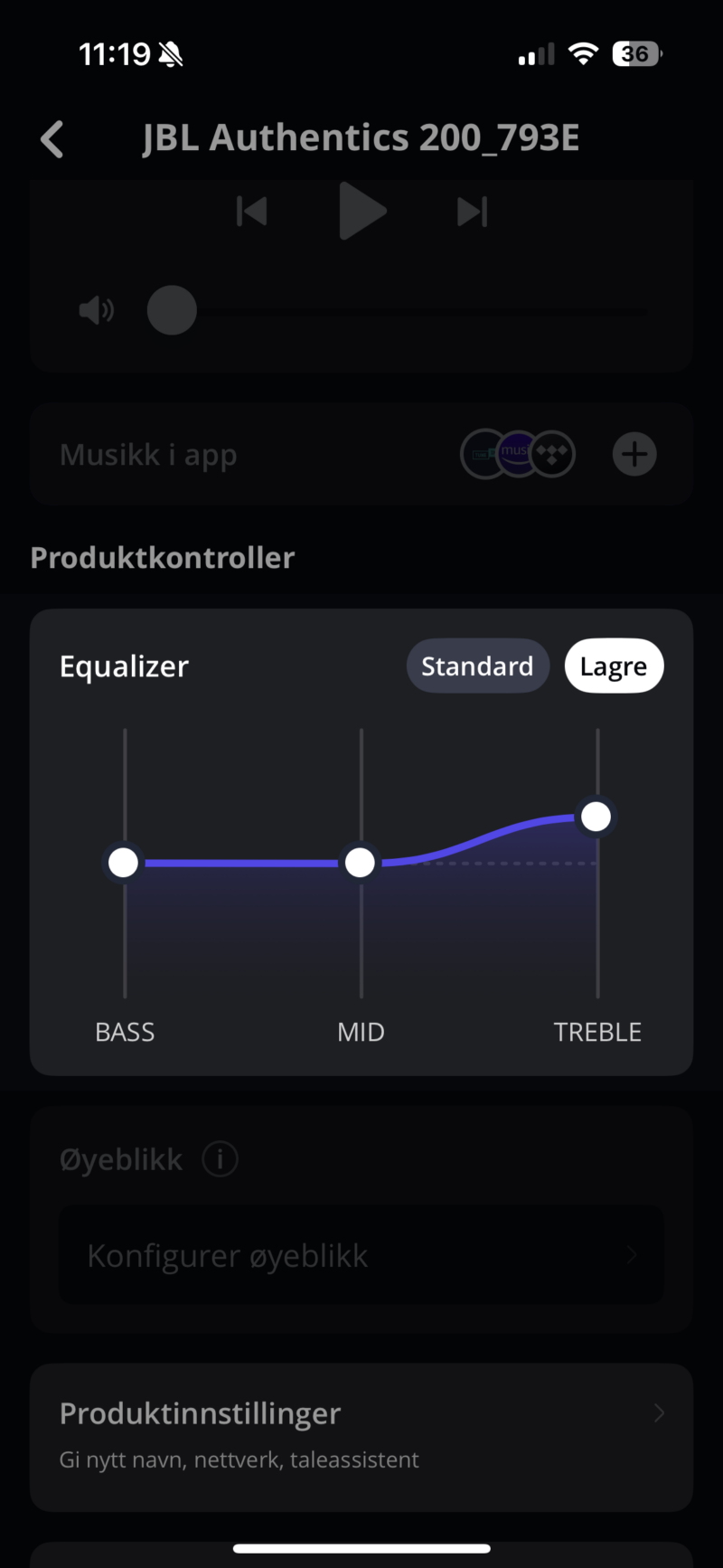 JBL:n mukaan Authentics 200 säätää ääntä itsekseen joka kerta, kun kaiuttimen panee päälle. Jos näin on, niin kalibrointi toimii kyllä varsin huomaamattomasti, sillä sain äänikuvan paremmaksi ihan sovelluksen EQ-säädintä käyttäen.