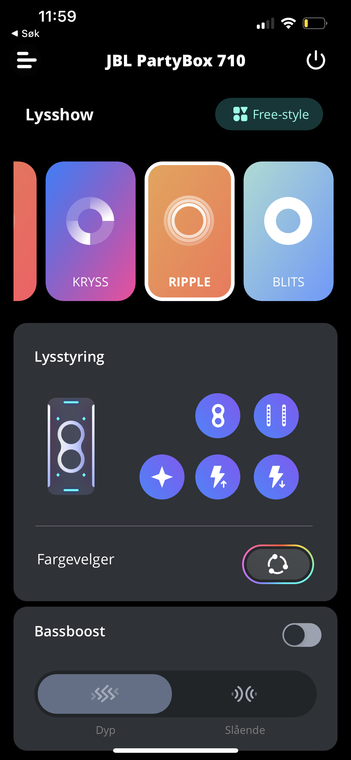 PartyBox 710:n metalliverkon takana piilee kaksi 20-senttistä bassoelementtiä, kaksi diskanttia ja 800 watin tehot, joten basso ja äänenpaine todella tuntuvat kehossa.