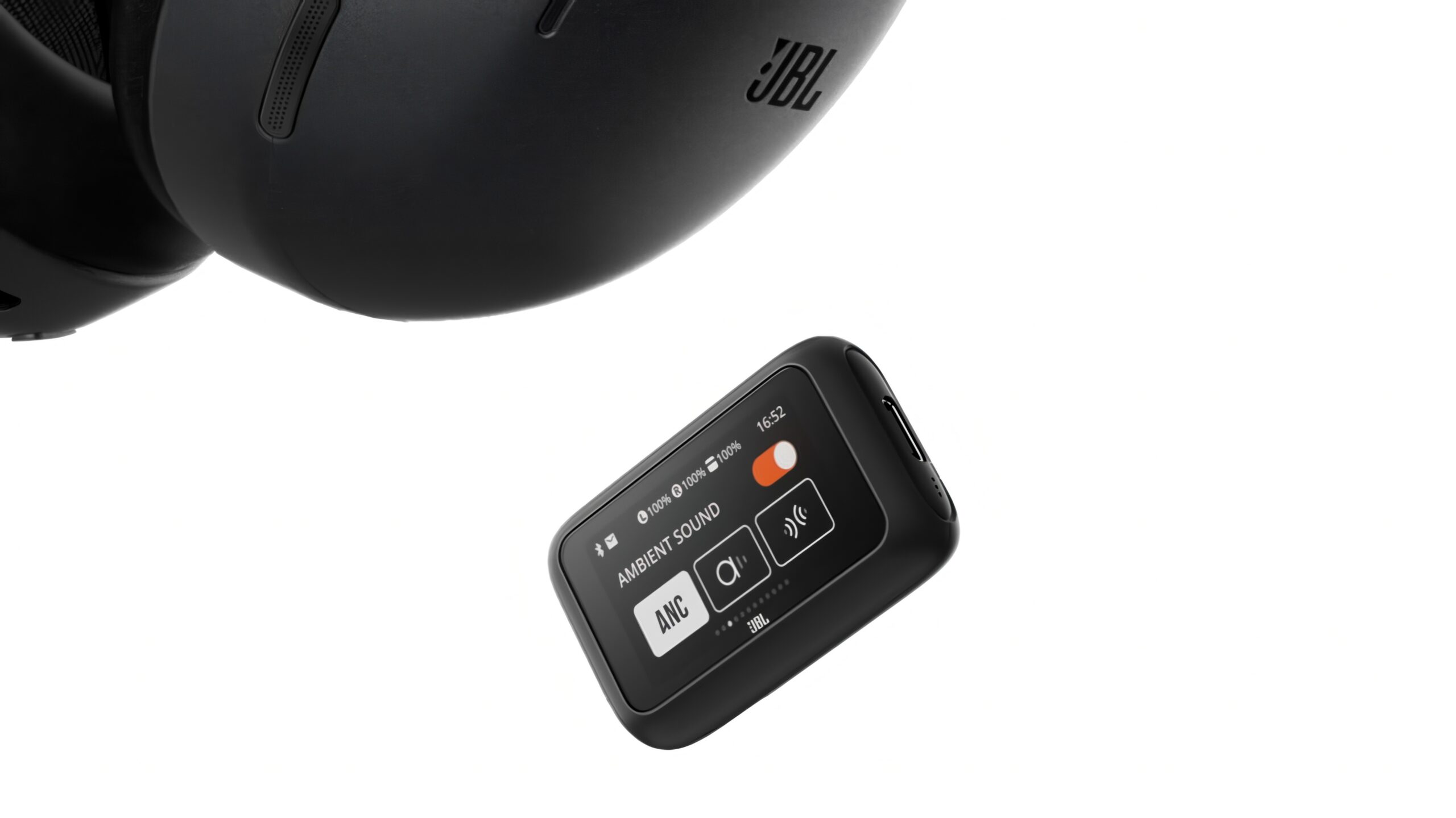 Pieni kosketusnäyttö toimii myös kuulokkeiden kaukosäätimenä. Siitä voi siis säätää taajuuskorjainta, tilaääntä ja muita toimintoja ilman, että tarvitsee kaivaa puhelinta esiin. Erityisen kätevää se on silloin, kun käyttää kuulokkeita tietokoneen kanssa, sillä JBL:n sovellusta ei ole saatavana koneelle.
