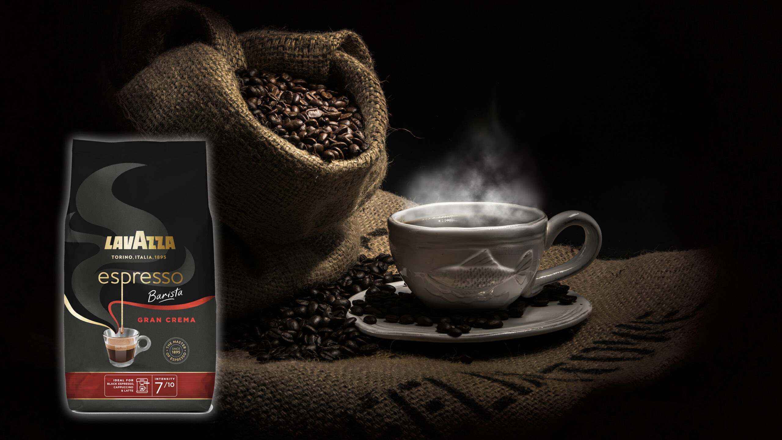 Ostimme testiä varten suosikkipapujamme eli Lavazza Espresso Barista Gran Cremaa, joka hieman keskipaahtoa vahvempi ja tekee espressosta kermaisen. Pavut sopivat täydellisesti useimpiin kahvijuomiin, kuten cappucinoon, americanoon, latteen ja tavalliseen kahviin.