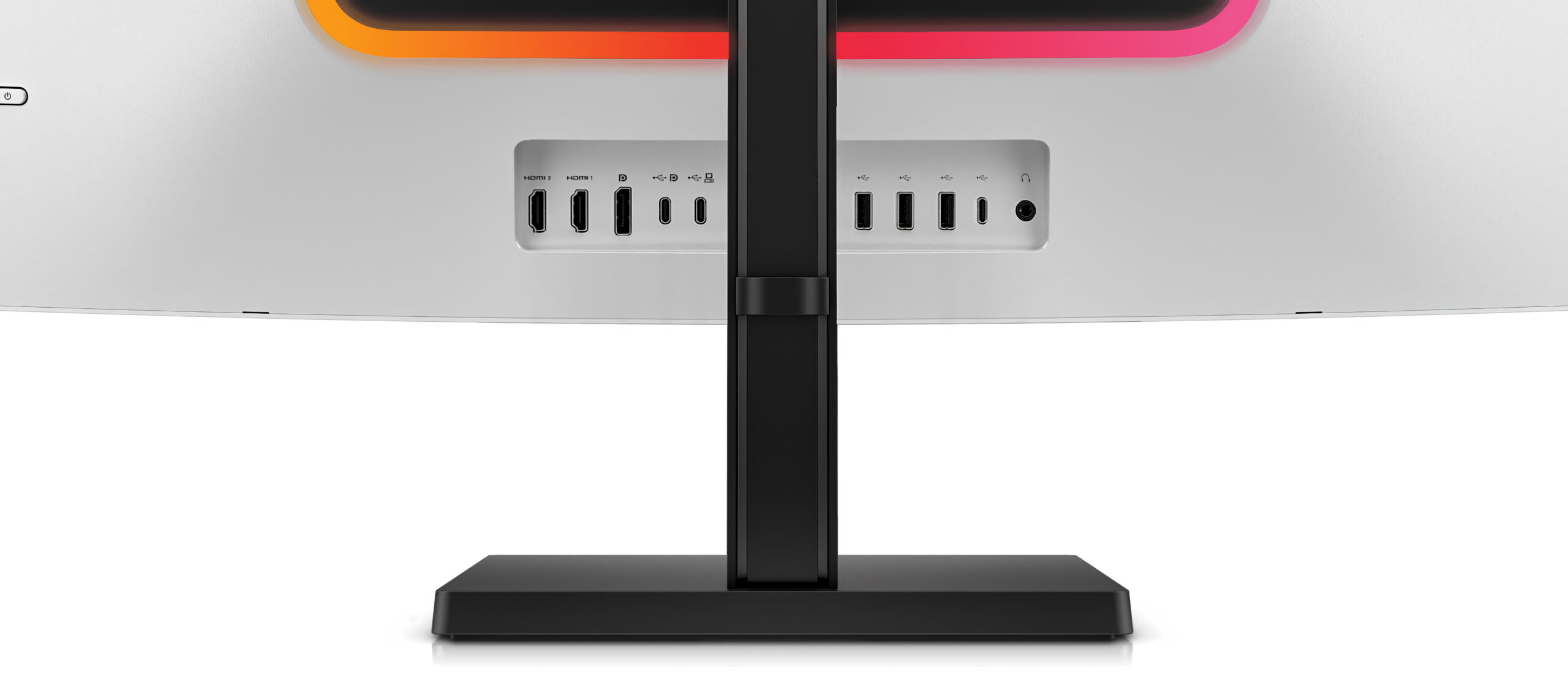 HP:n näyttö on liitäntöjen puolesta todella hyvin varusteltu: kaksi HDMI 2.1 -porttia, yksi DisplayPort 1.4 ja kaksi USB-C-porttia, joista toinen tukee DisplayPortia ja 140 watin latausta. Se riittää energiasyöpön pelikannettavankin lataamiseen. USB-hubissa on kaksi nopeaa USB-A 3.2 -porttia ja yksinkertaisempi USB-A hiirtä ja näppäimistöä varten.