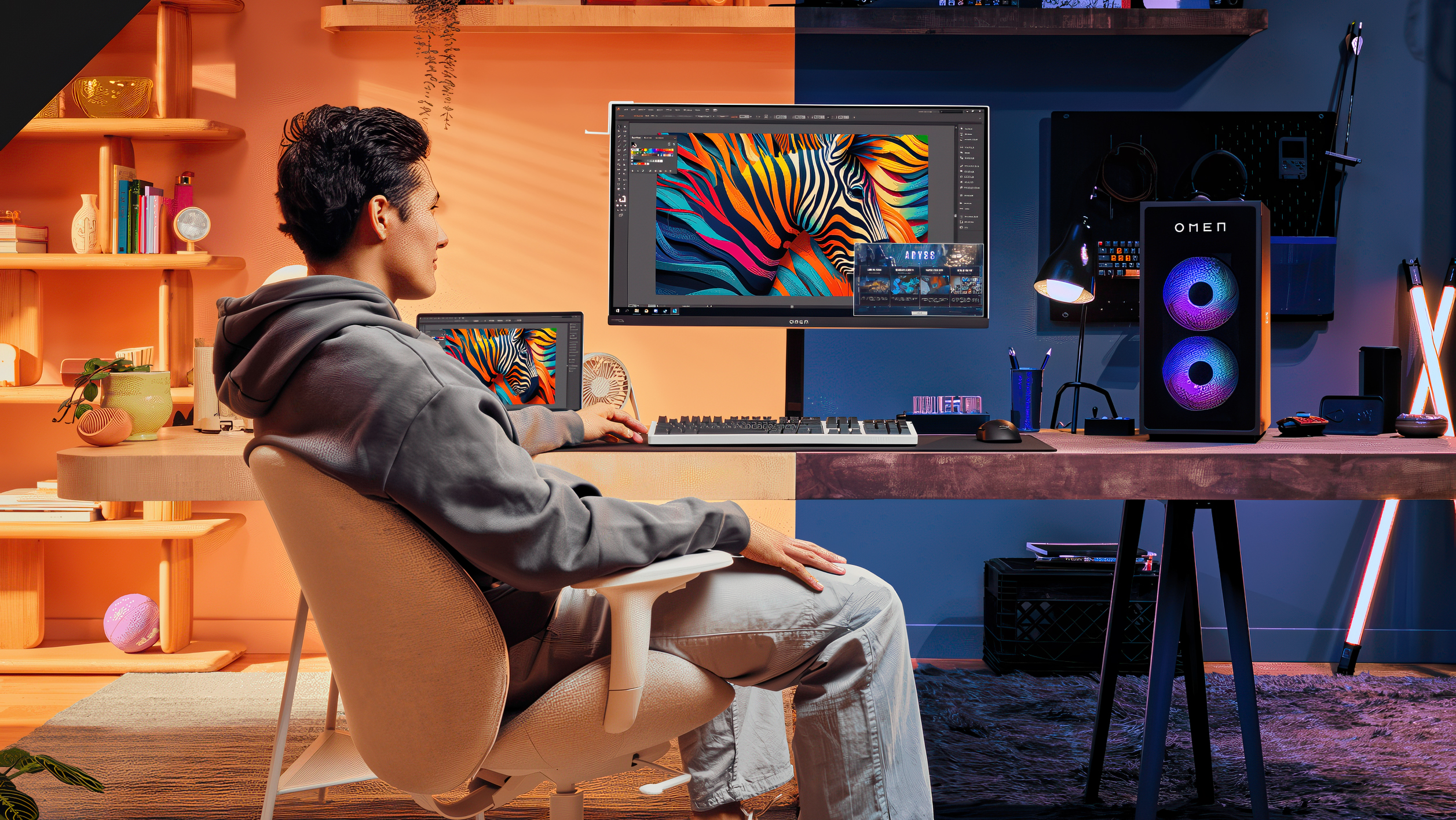 HP Omen Transcend 32 on vaikuttava näyttö, jossa yhdistyvät loistava kuvanlaatu, salamannopea vasteaika ja fiksut toiminnot, joista on hyötyä sekä pelatessa että työskennellessä.