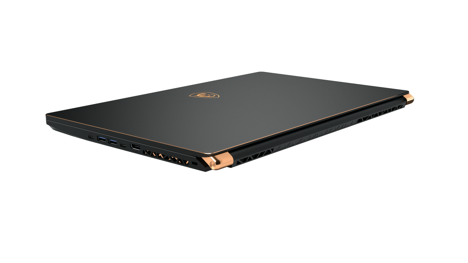 MSi GS75 Stealth 8SG on juuri tällainen asiallisenpuoleinen pelikone. Kuori on mustaa anodisoitua alumiinia ja 17,3-tuumaista näyttöä kehystää vain hyvin ohut reunus. Näytön takaosa on silkkiseksi harjattua mustaa metallia. Kokonaisuudesta erottuvat kuparinväriset logo ja saranat, mutta nekään eivät mitenkään lävähdä silmille. Ohjauslevy on tavallista suurempi, ja kaikki tihkuu ylellisyyttä – mitä kolmen ja puolen tonnin koneelta sopii odottaakin!