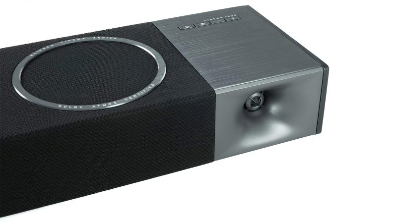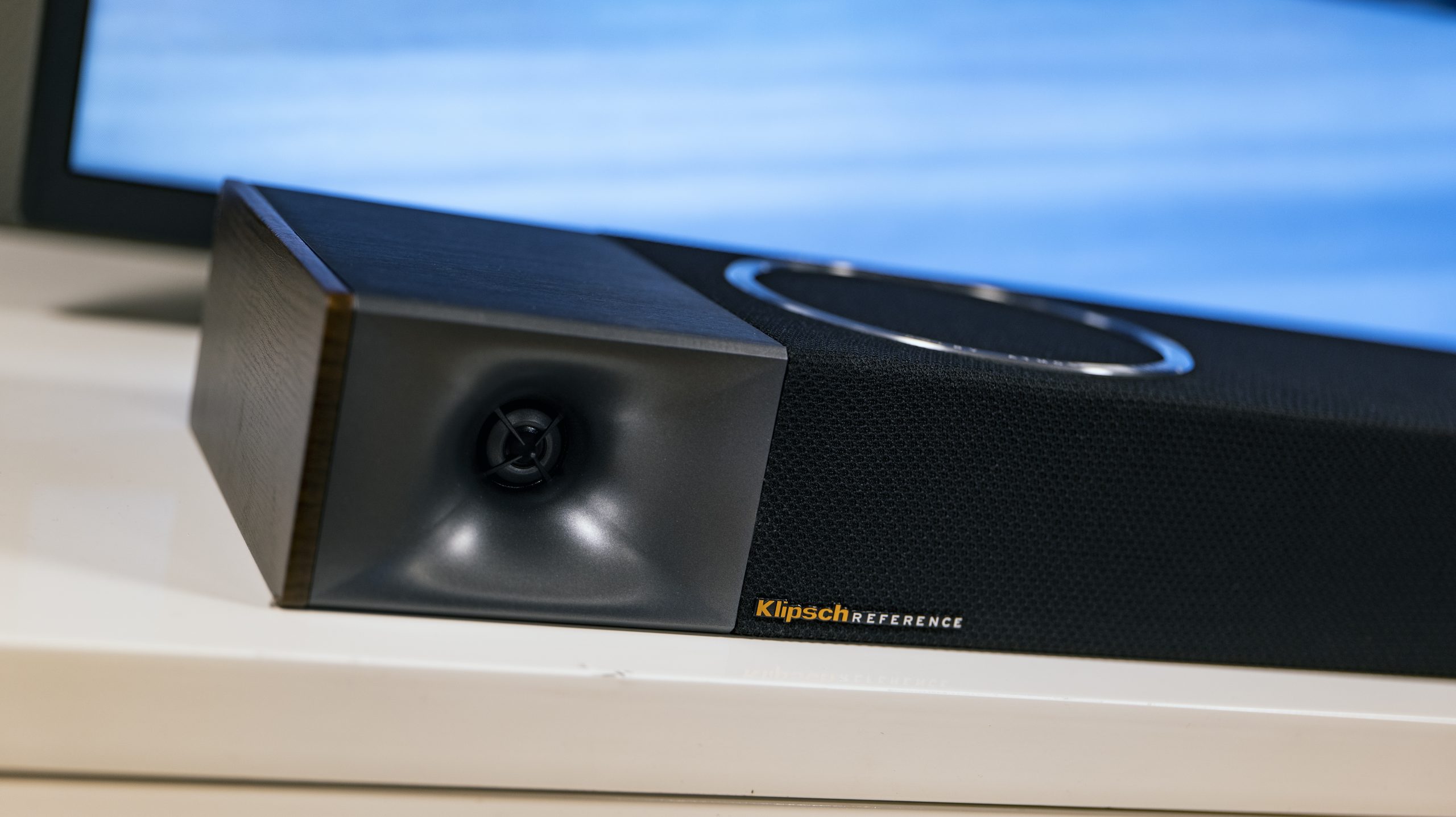 Klipsch Cinema 1200 5.1.4-surroundsysteemi: edessä on yhdeksän kaiutinelementtiä, jotka on jaettu kolmeksi kanavaksi (oikea, vasen ja keski). Joka kanavalla on torvidiskantti, joka huolehtii äänen dynamiikoista ja levittäytymisestä sekä kaksi ovaalia keskirekisteri-bassoelementtiä tukemaan puheentoistoa ja toimintaa. Soundbarin päällä on kaksi kattoon suunnattua täysrekisterielementtiä, jotka toimivat Dolby Atmos -ääniraitojen korkeuskanavina.