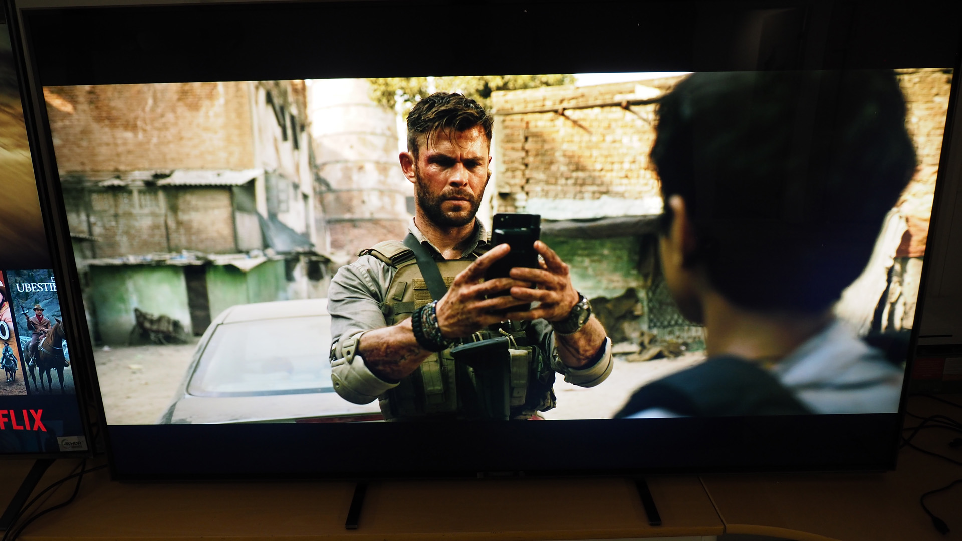 Aloitimme käynnistämällä Netflixistä löytyvän Extraction-toimintaelokuvan, joka tarjoillaan kontrastiltaan vahvassa Dolby Vision HDR-formaatissa. Kun Tyler Rake (Chris Hemsworth) liikkuu Dhakassa torilla, sitten hämäriin huoneisiin ja pimeisiin maanalaisiin tunneleihin, ovat kuvat aivan ensiluokkaisia. Nämä kohtaukset ovat ennenkin tehneet meihin vaikutuksen, mutta Sony saa kirkkaat alueet todella hehkumaan. Kun aurinko paistaa taivaalla heijastuen kiiltäviin pintoihin, on kuvassa vangitseva, melkein 3D-kuvan kaltainen realistinen tunnelma.
