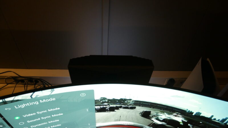 Otamme peliohjaimet käteen ja asetumme noin käsivarren mitan päähän ruudusta, jonka kaarevuus on säädetty noin puoliväliin. Pelikokemus tuntuu heti realistisemmalta ja imaisee mukaansa.