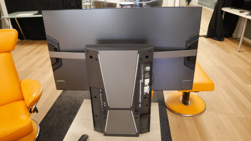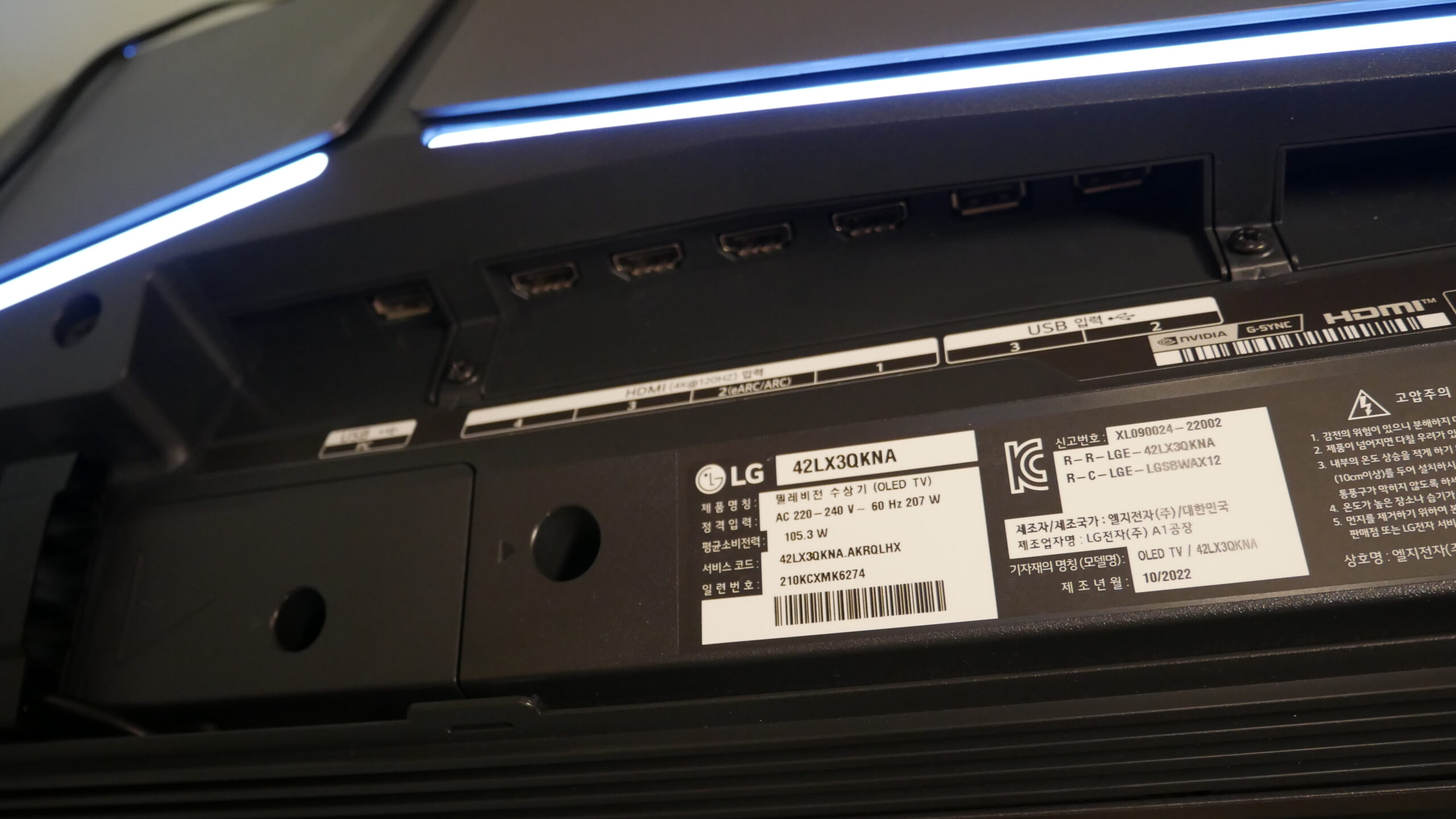 Moottoria lukuun ottamatta LG Flex muistuttaa pitkälti LG OLED42C2 -mallia, jonka olemme testanneet aiemmin. Ruudun takana on samalla tavalla tv-vastaanotin ja hyvät liitännät. Kaikki neljä HDMI-sisääntuloa ovat 2.1-yhteensopivia, joten tilaa riittää nykyaikaisille pelikonsoleille, pelitietokoneille ja eARC:n kautta liitettävälle soundbarille.