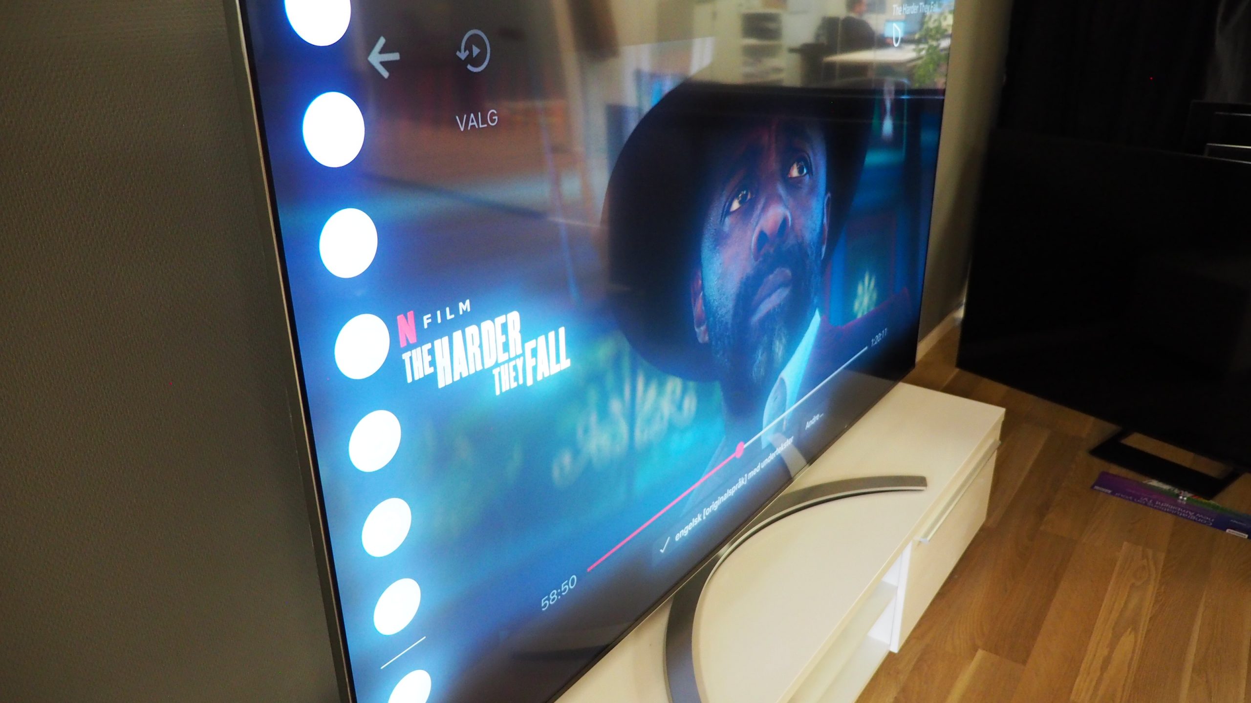 Aloitimme katselun Netflixin uutuuselokuvalla The Harder They Fall, joka teki heti selväksi, että LG:n kuvassa on upeaa syvyyttä. Lähikuvat Idris Elbasta ja hänen roistojoukostaan ovat pelottavan realistisia!