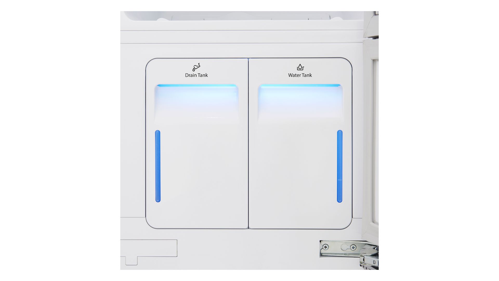 Pohjalla on kaksi vesisäiliötä, joista toinen täytetään vedellä ja toinen kerää kaappiin tiivistyvän veden. Tuntuu vähän hassulta, että säiliöitä on kaksi, mutta näin nyt on.